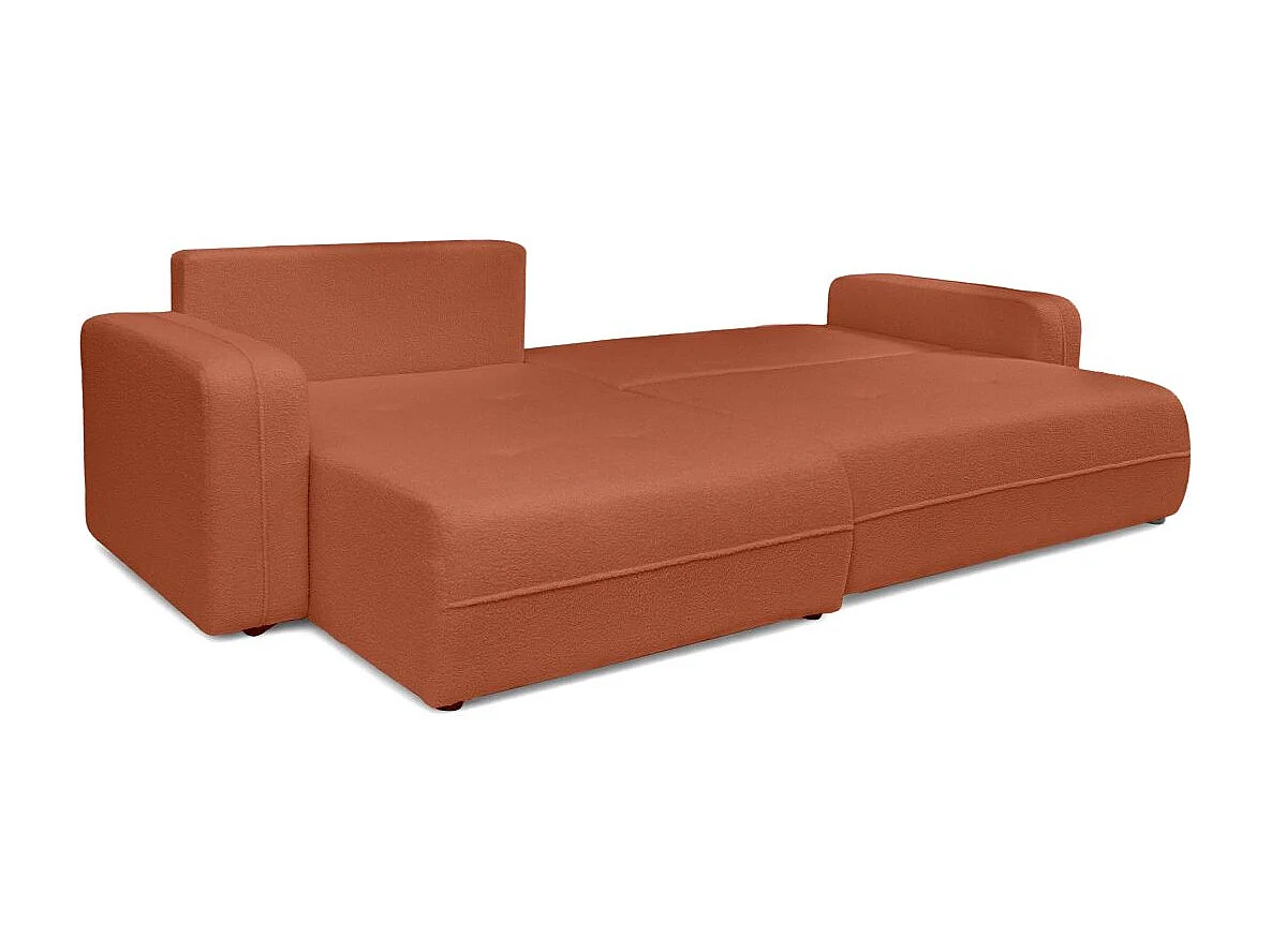 Canapé d'angle LEILA convertible et réversible 3 places en tissu bouclette - Terracotta