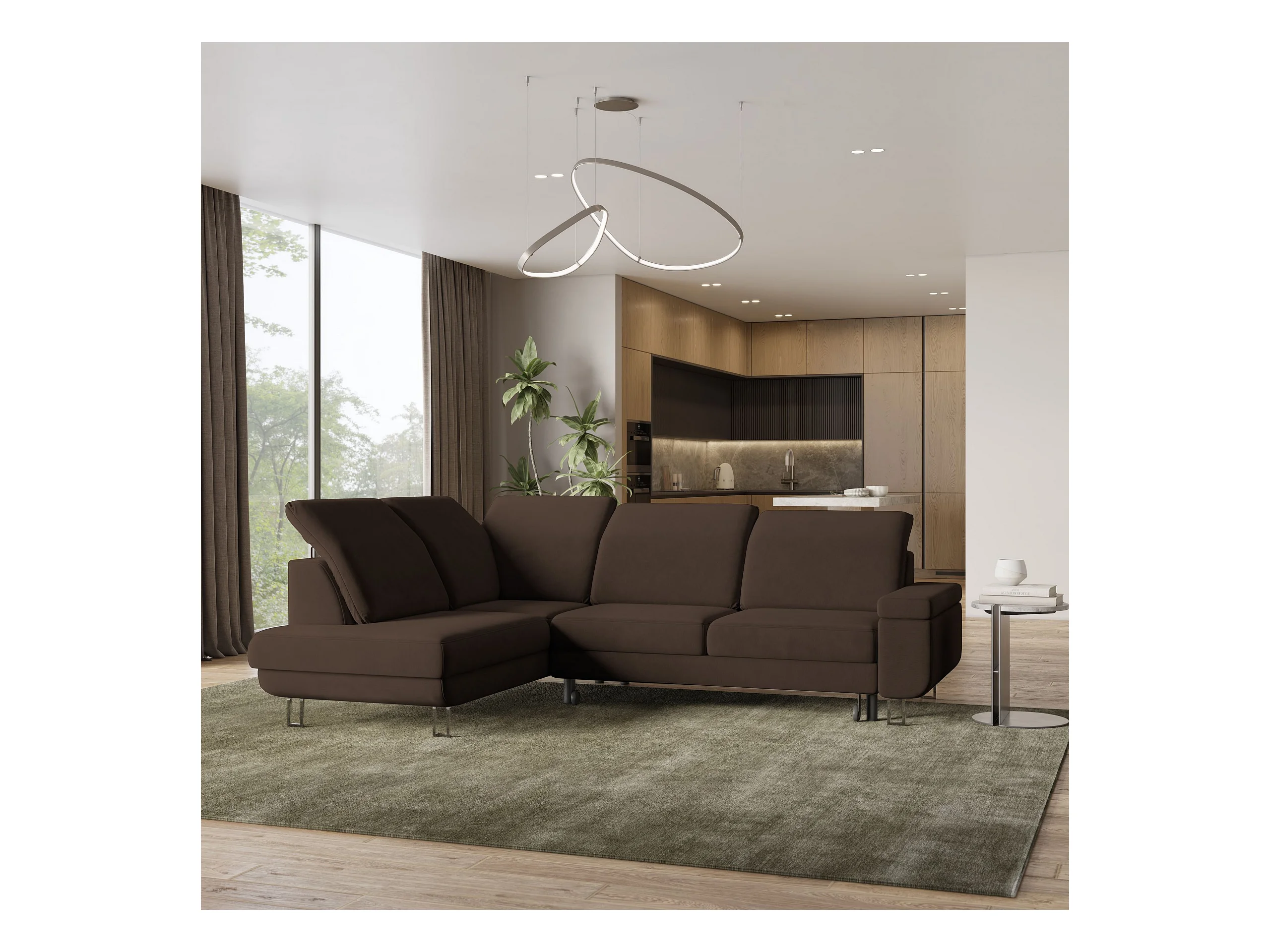 Canapé d'angle LERMA Marron en velours avec fonction de couchage