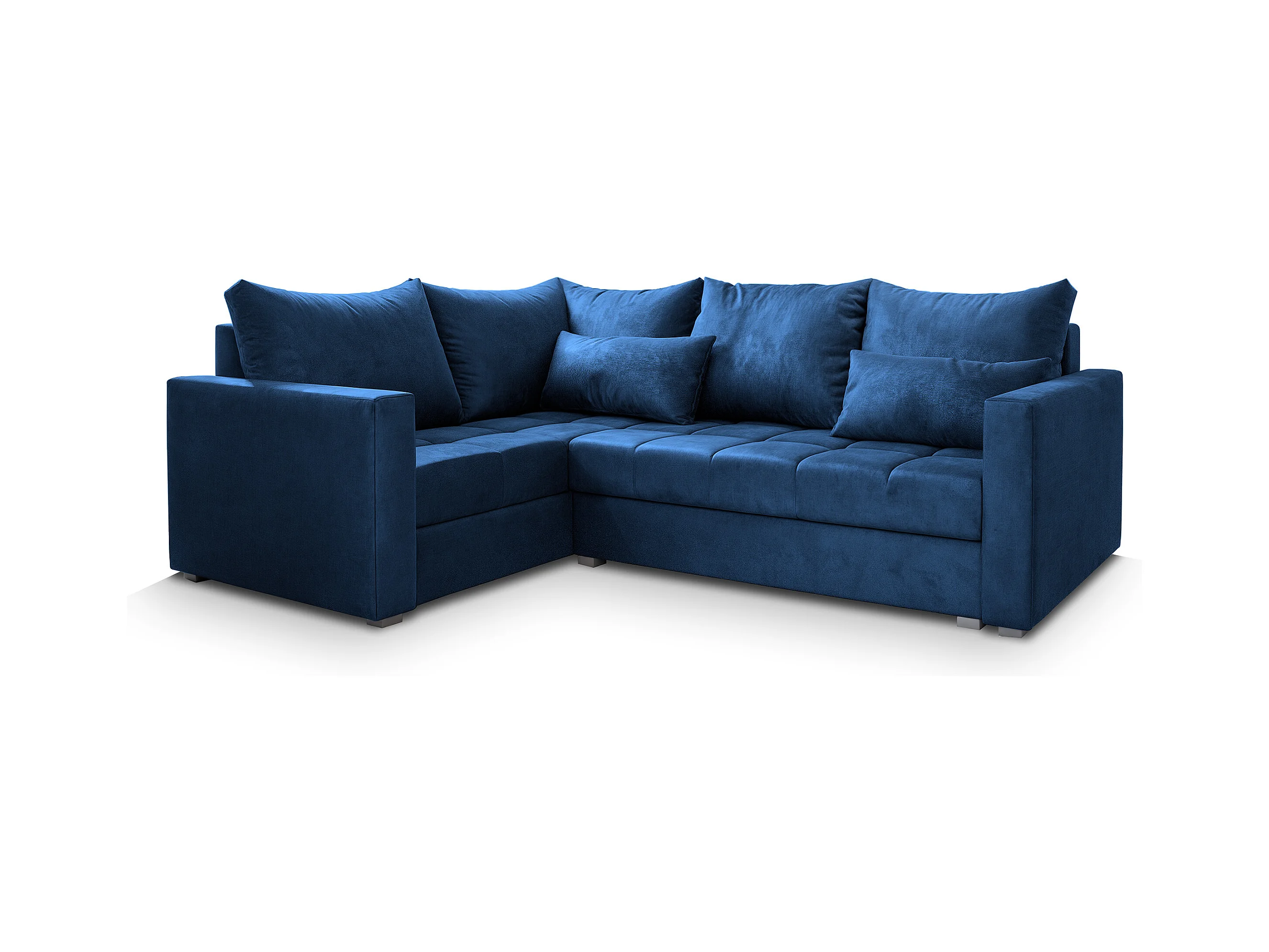 Canapé d'angle LIRENO Bleu en peluche avec fonction de couchage