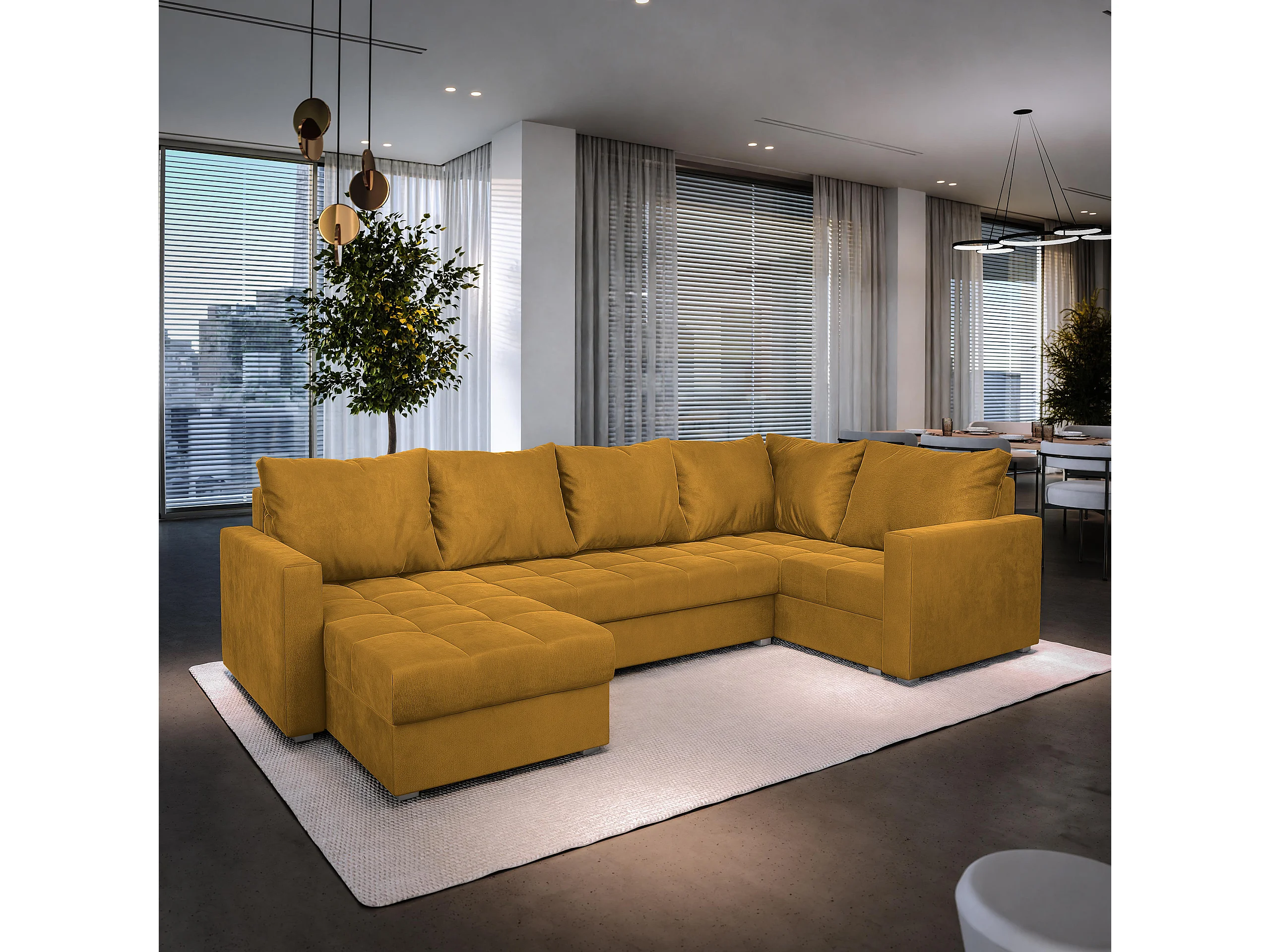 Canapé d'angle LORIVO Jaune en peluche avec fonction de couchage