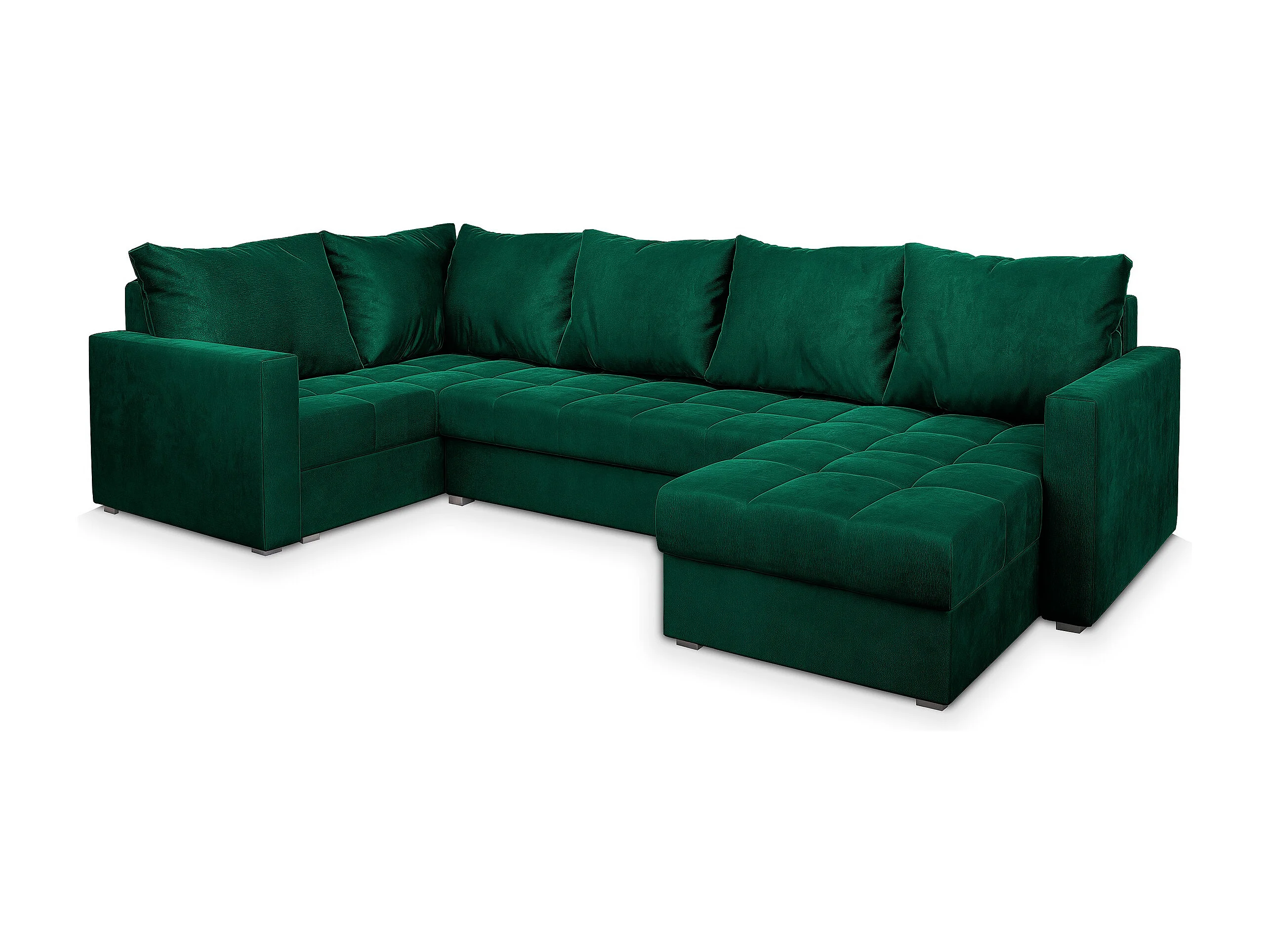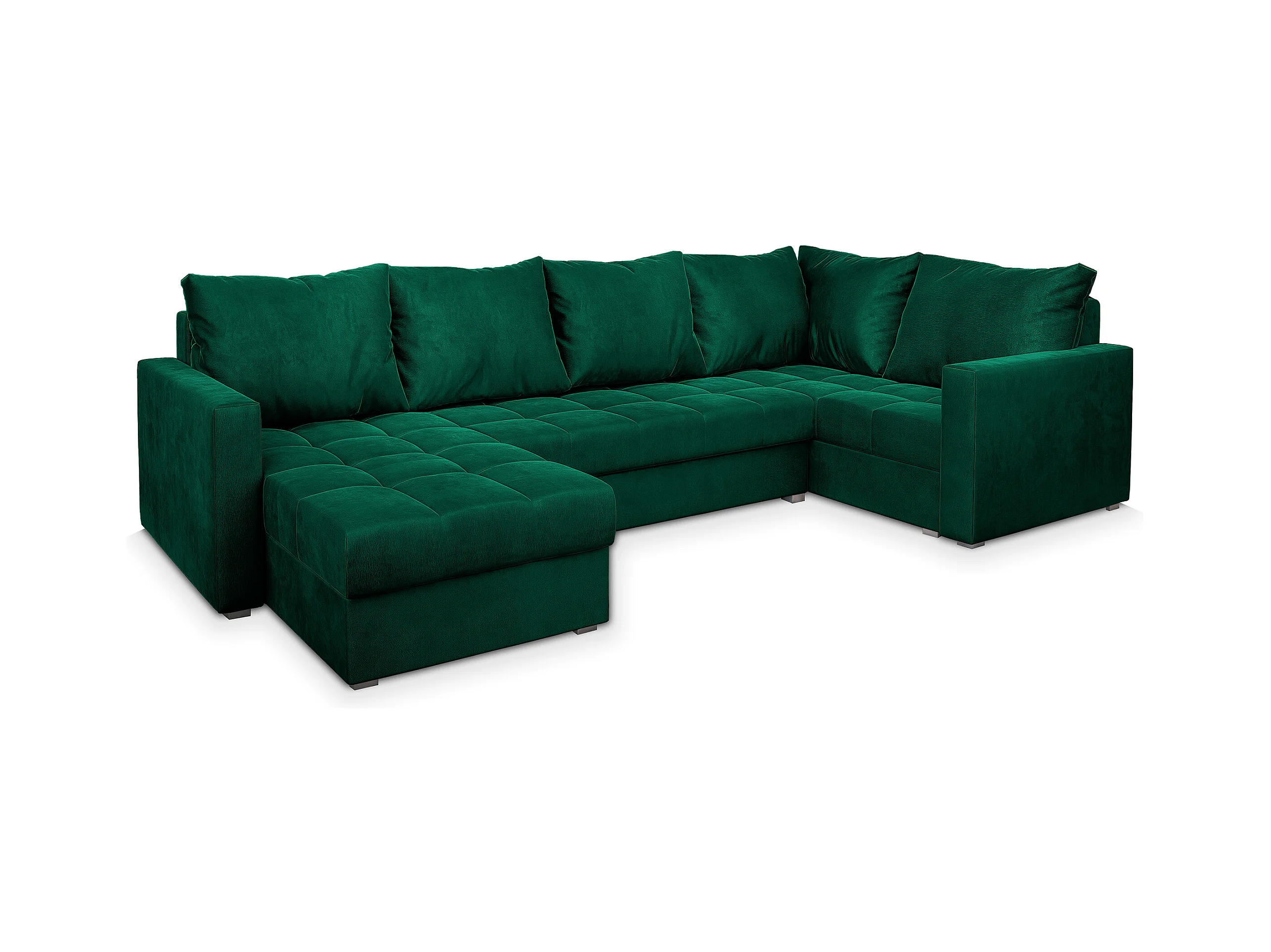 Canapé d'angle LORIVO Vert Sapin en peluche avec fonction de couchage
