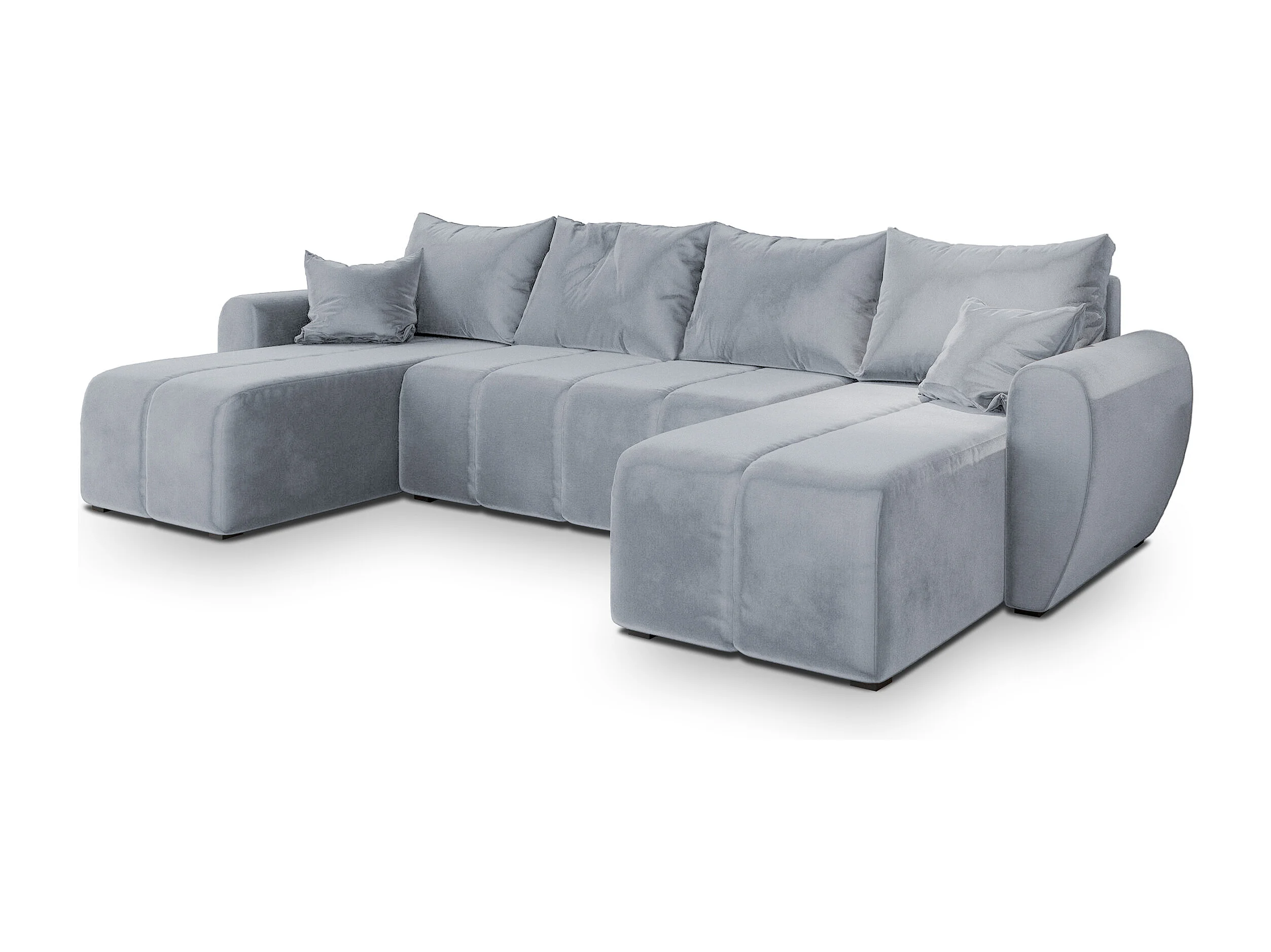 Canapé d'angle MADISON Gris clair en peluche avec fonction de couchage