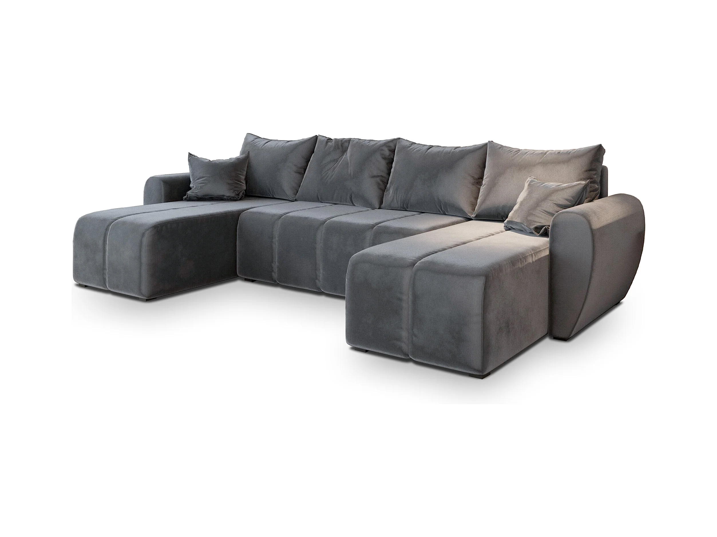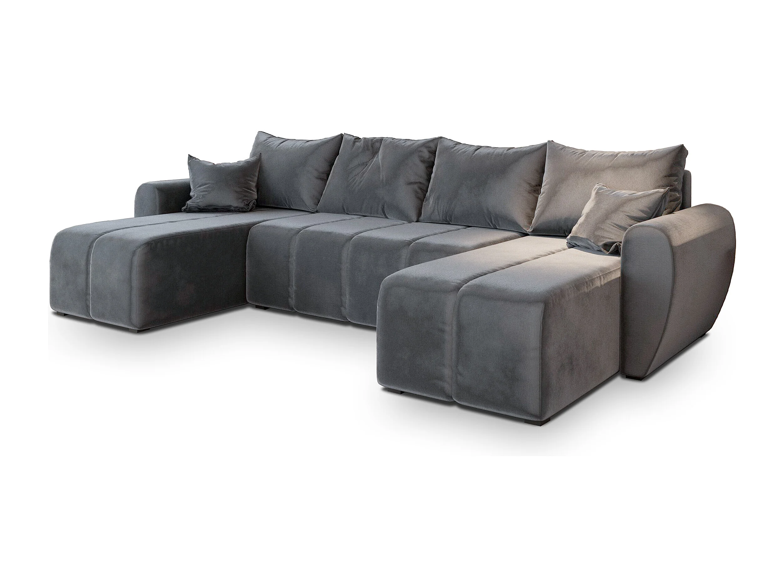 Canapé d'angle MADISON Gris en peluche avec fonction de couchage