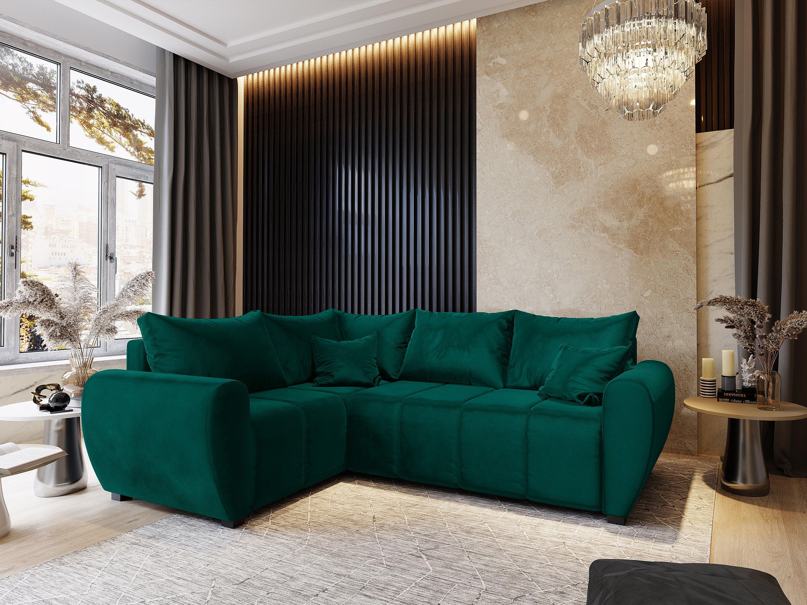 Canapé d'angle MADISON Vert Sapin en peluche avec fonction de couchage