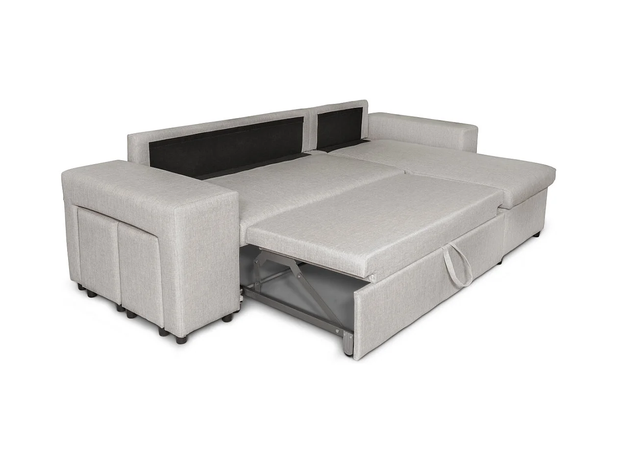 Canapé d'angle réversible Mady avec coffre, accoudoir étagère et poufs gauche en tissu - Beige - L254 x P146 x H81cm - Loungitude
