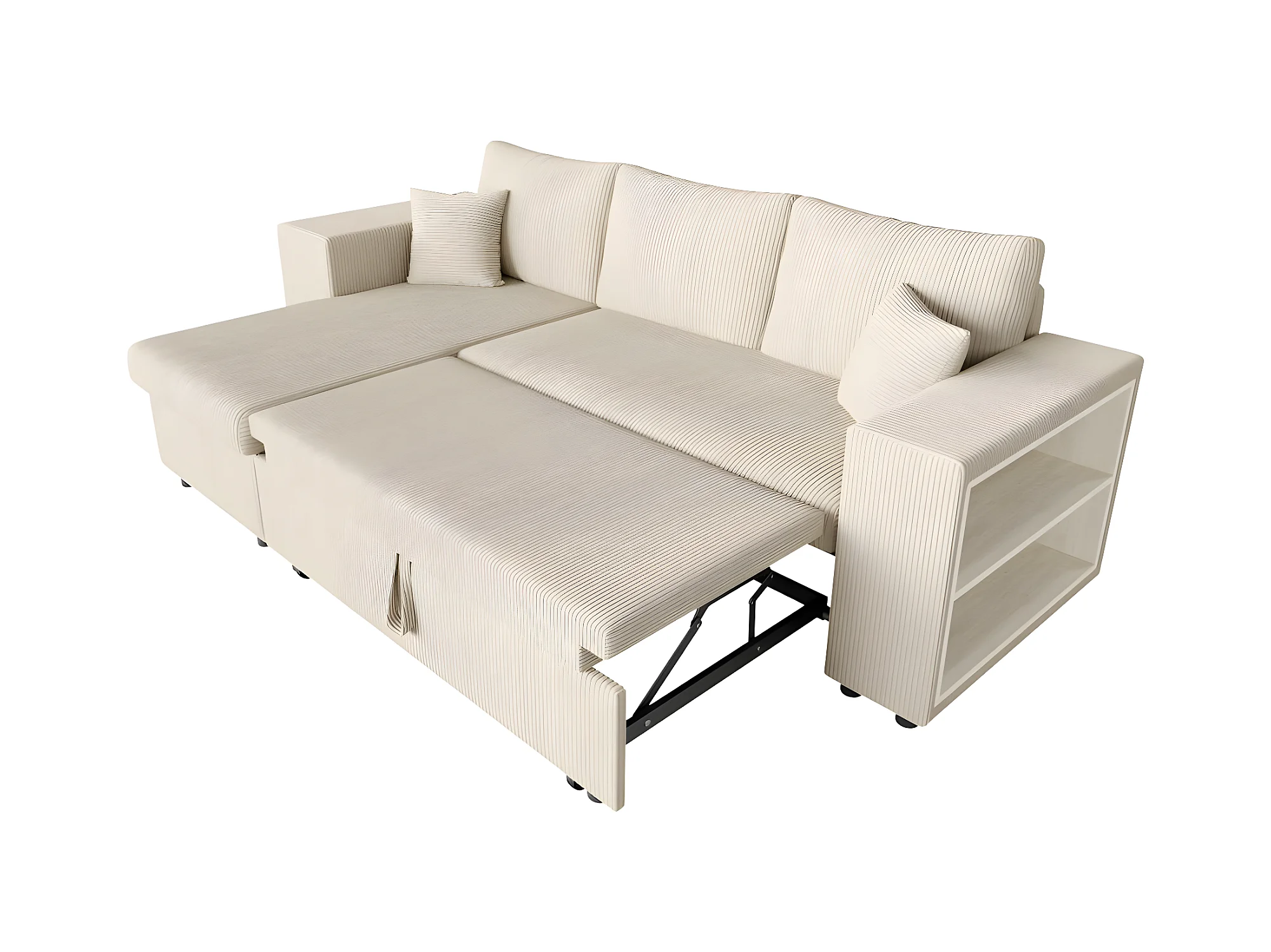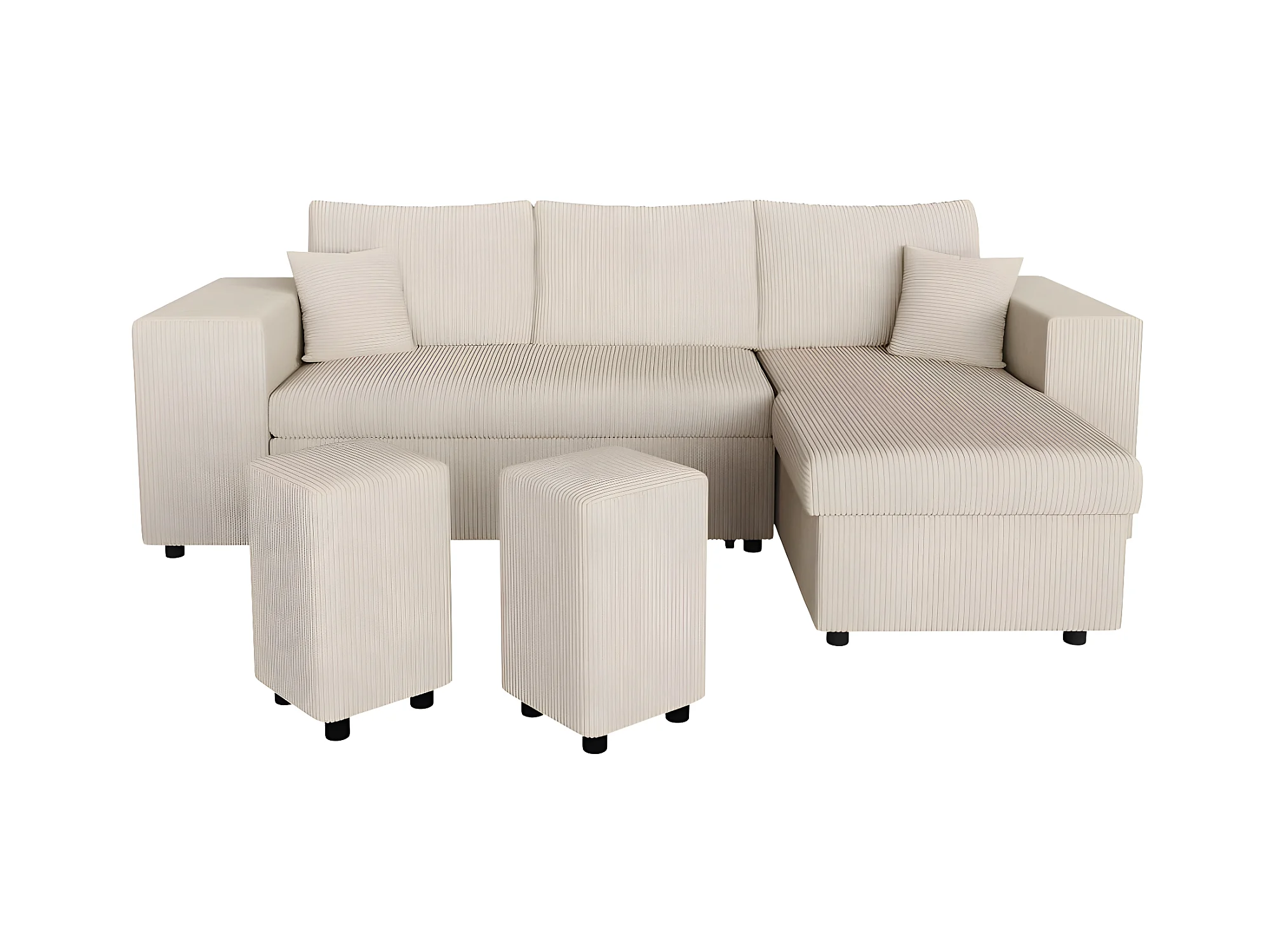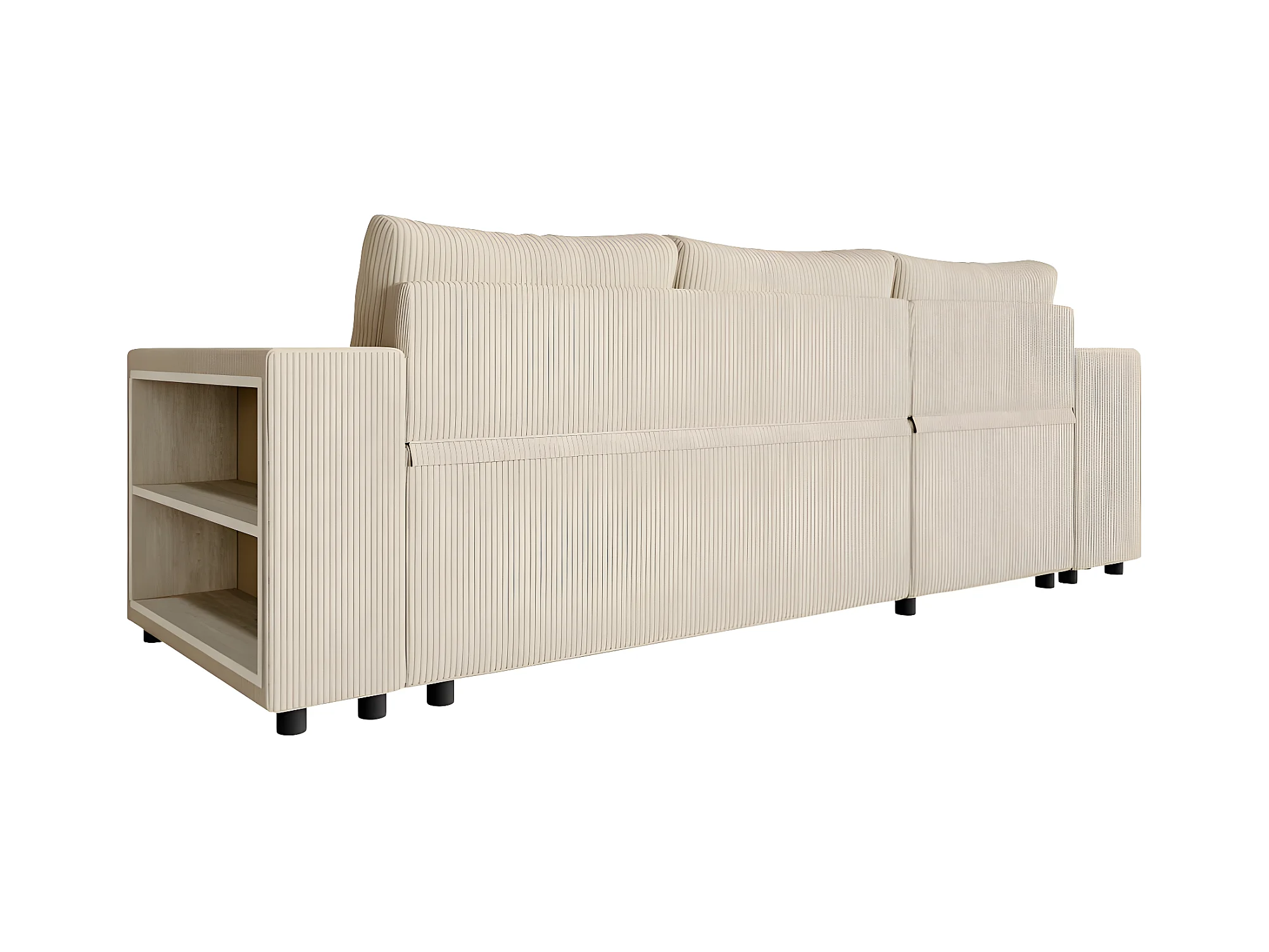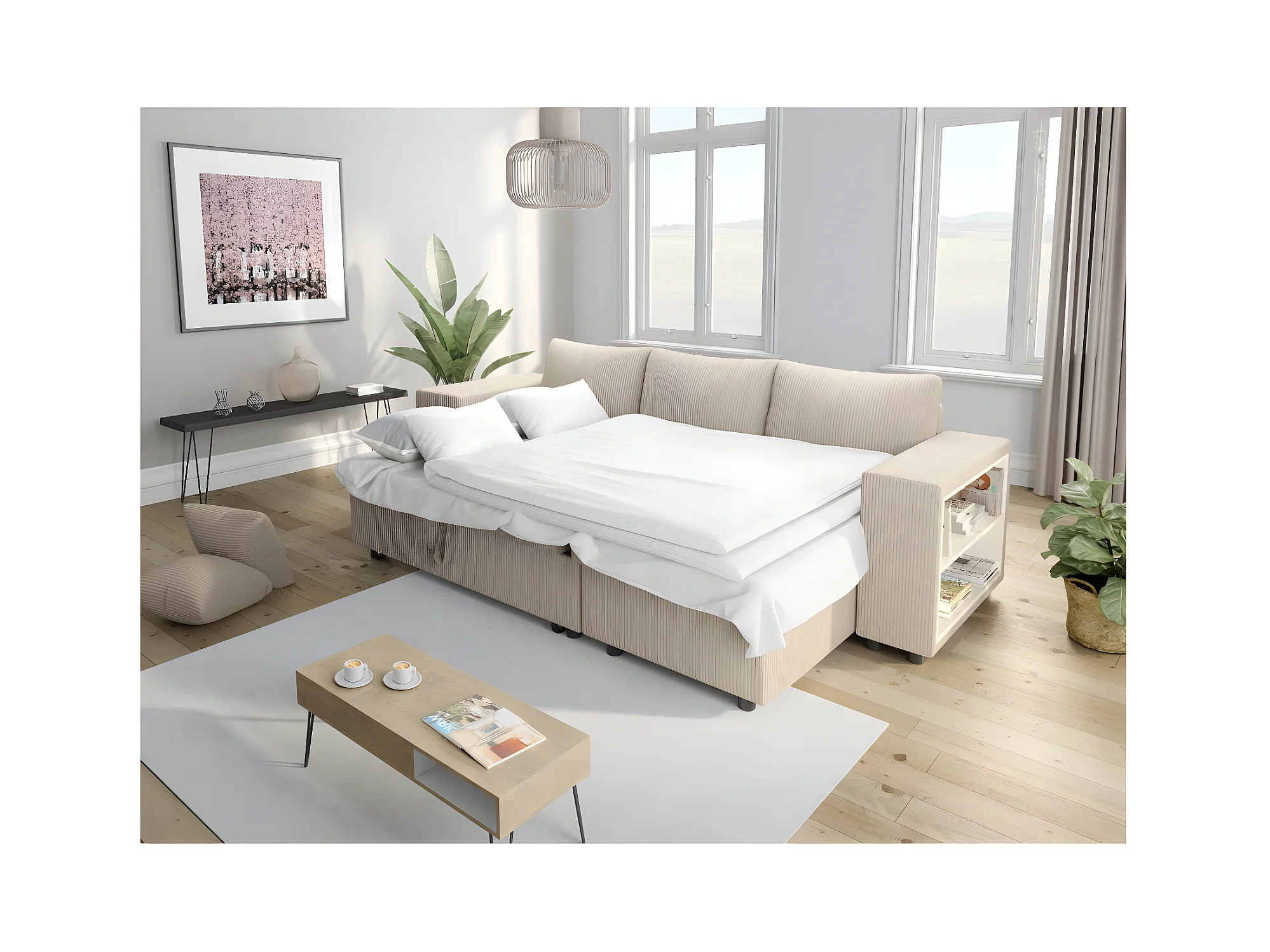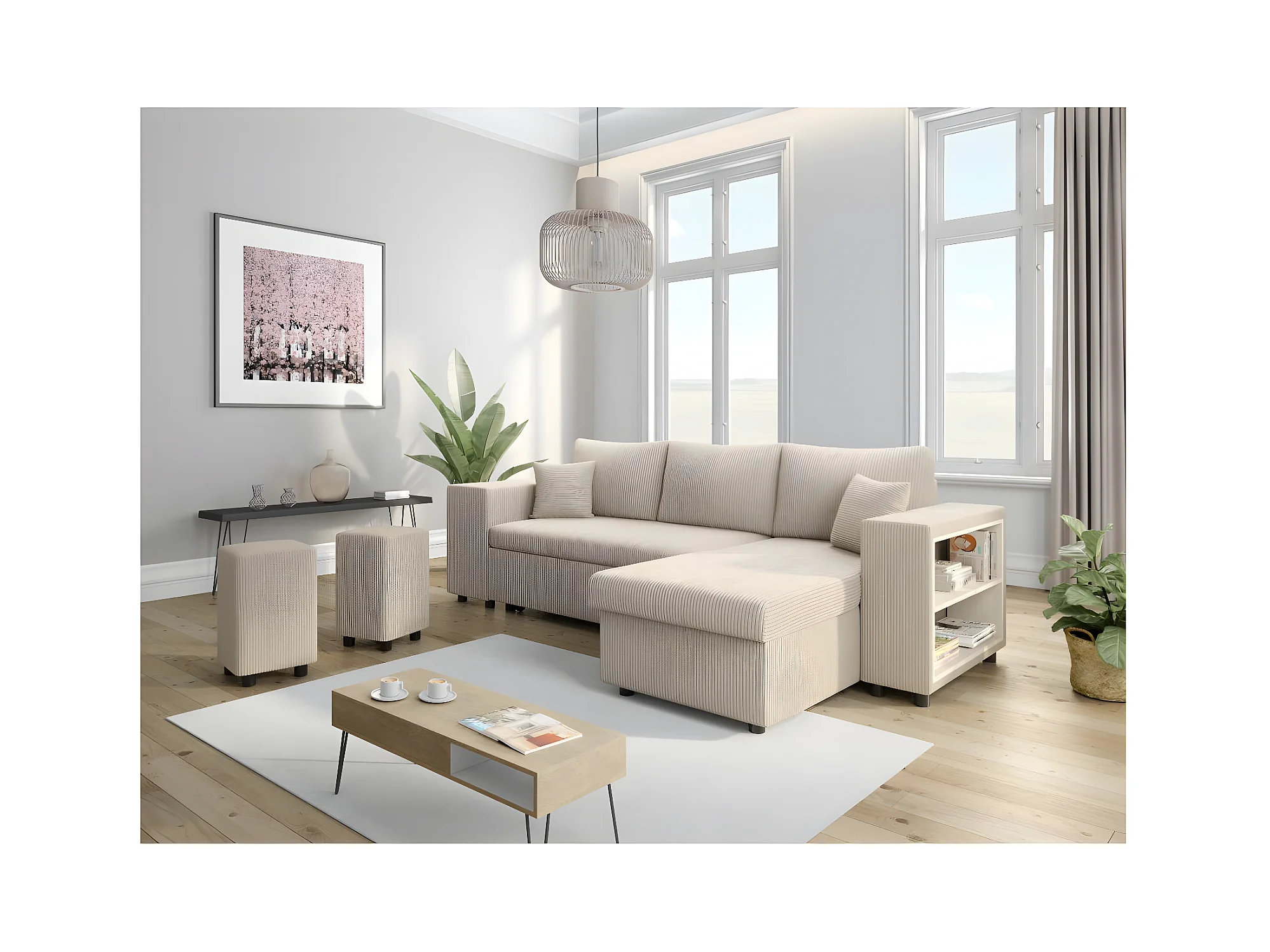 Canapé d'angle réversible Mady avec coffre, rangement poufs à gauche en velours côtelé - Beige - L254 x P146 x H81cm - Loungitude