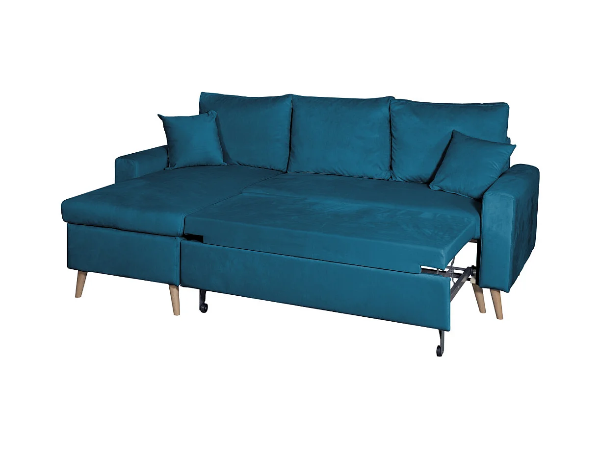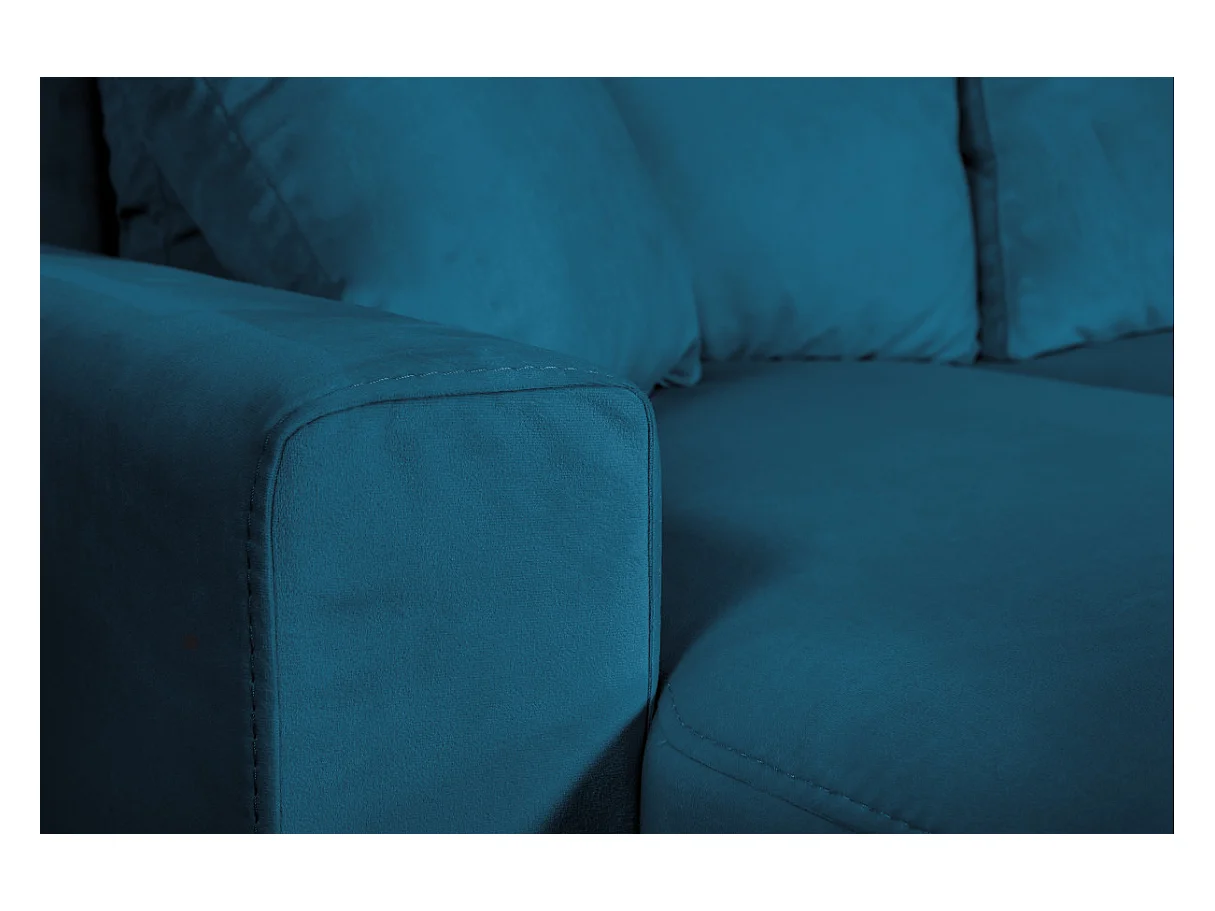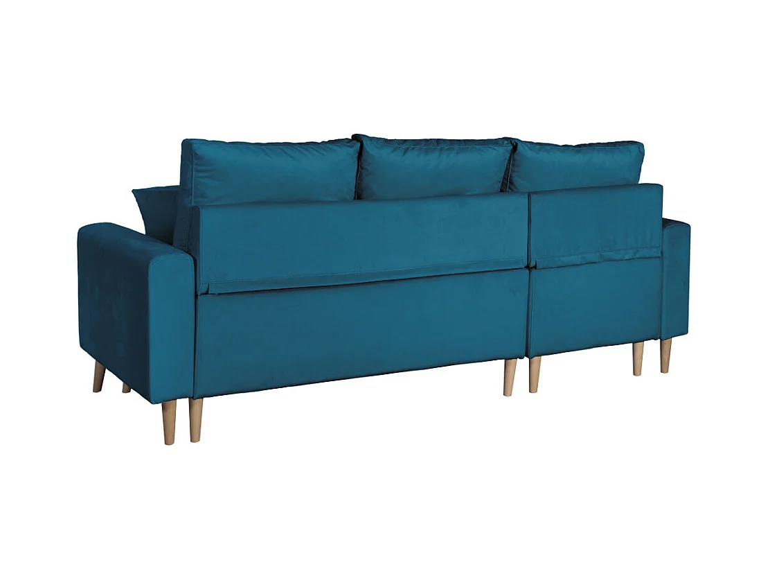 Canapé d'angle Maria scandinave réversible et convertible avec coffre en velours - Bleu pétrole - L227 x 148 x 95cm - Loungitude