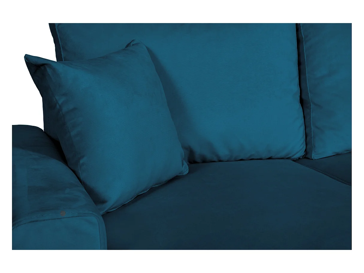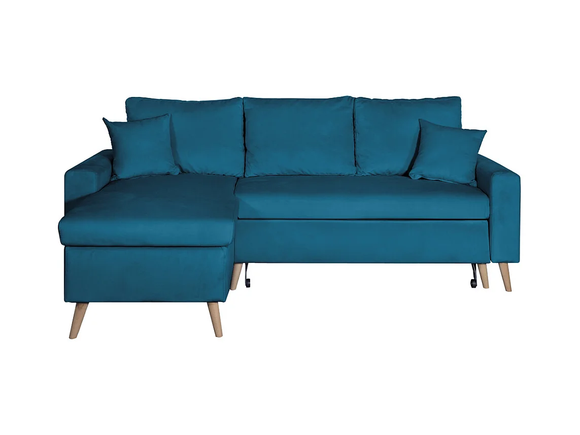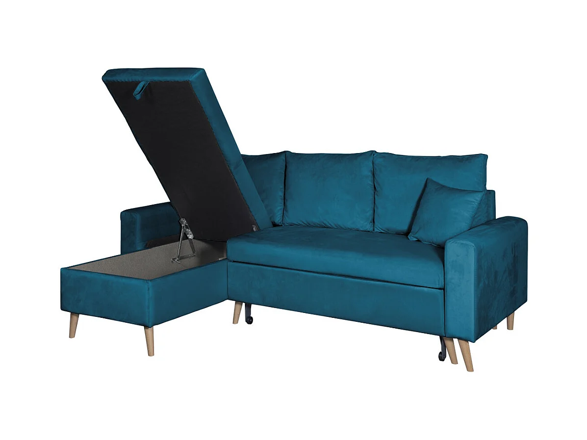 Canapé d'angle Maria scandinave réversible et convertible avec coffre en velours - Bleu pétrole - L227 x 148 x 95cm - Loungitude