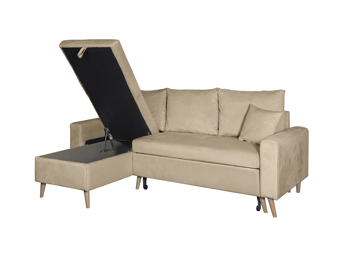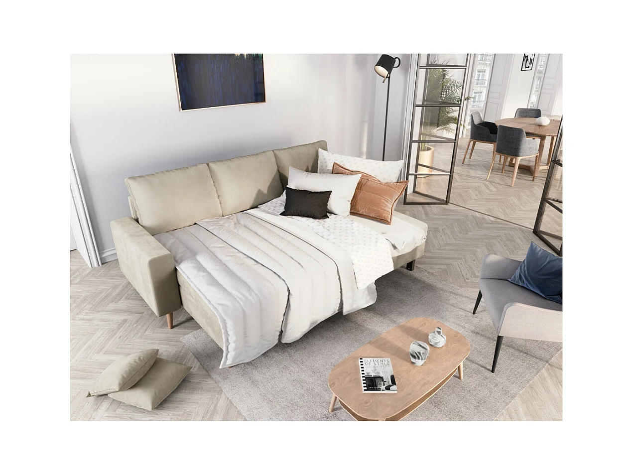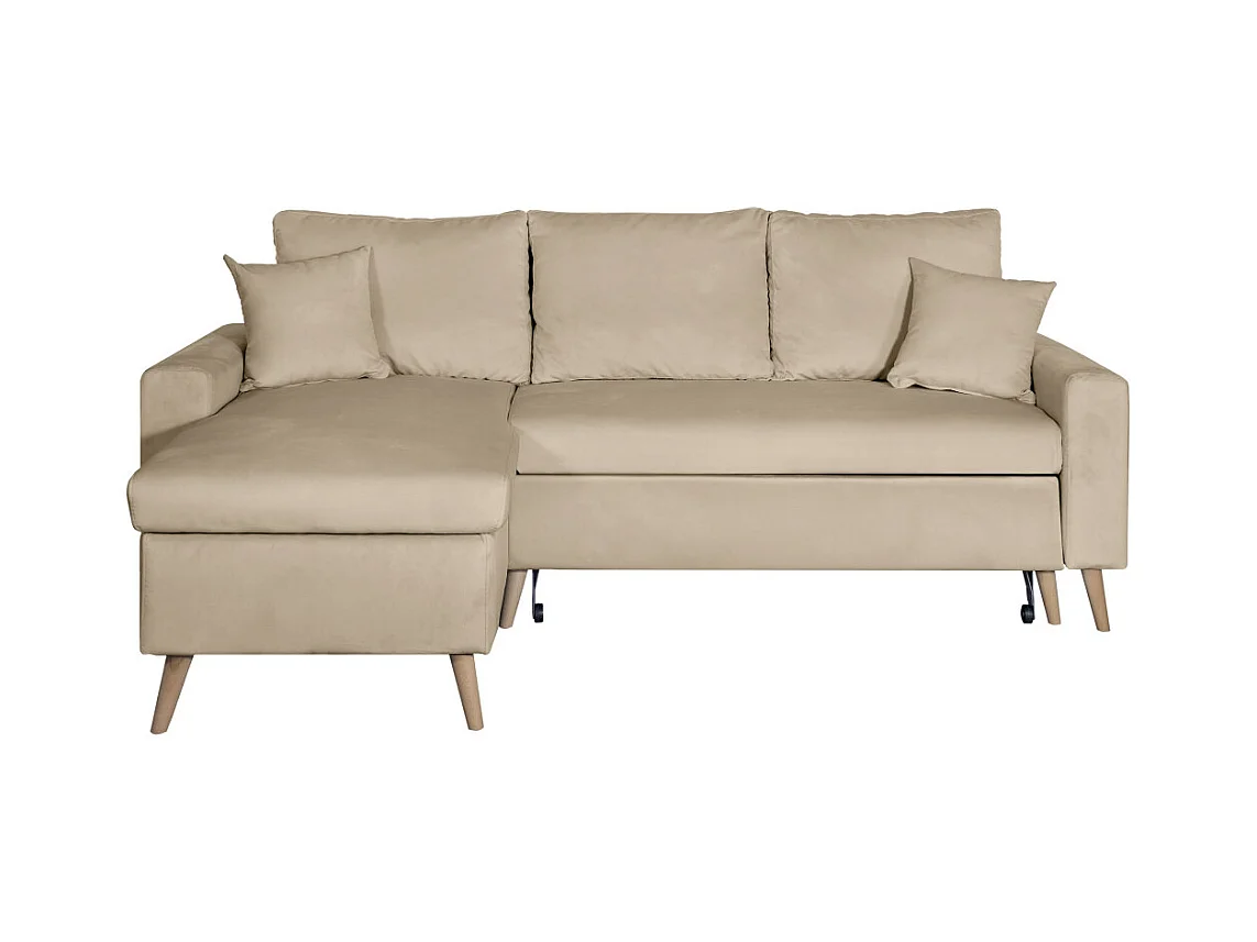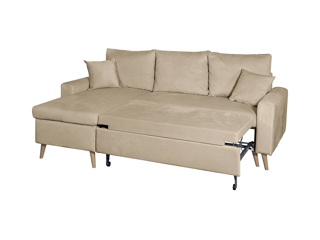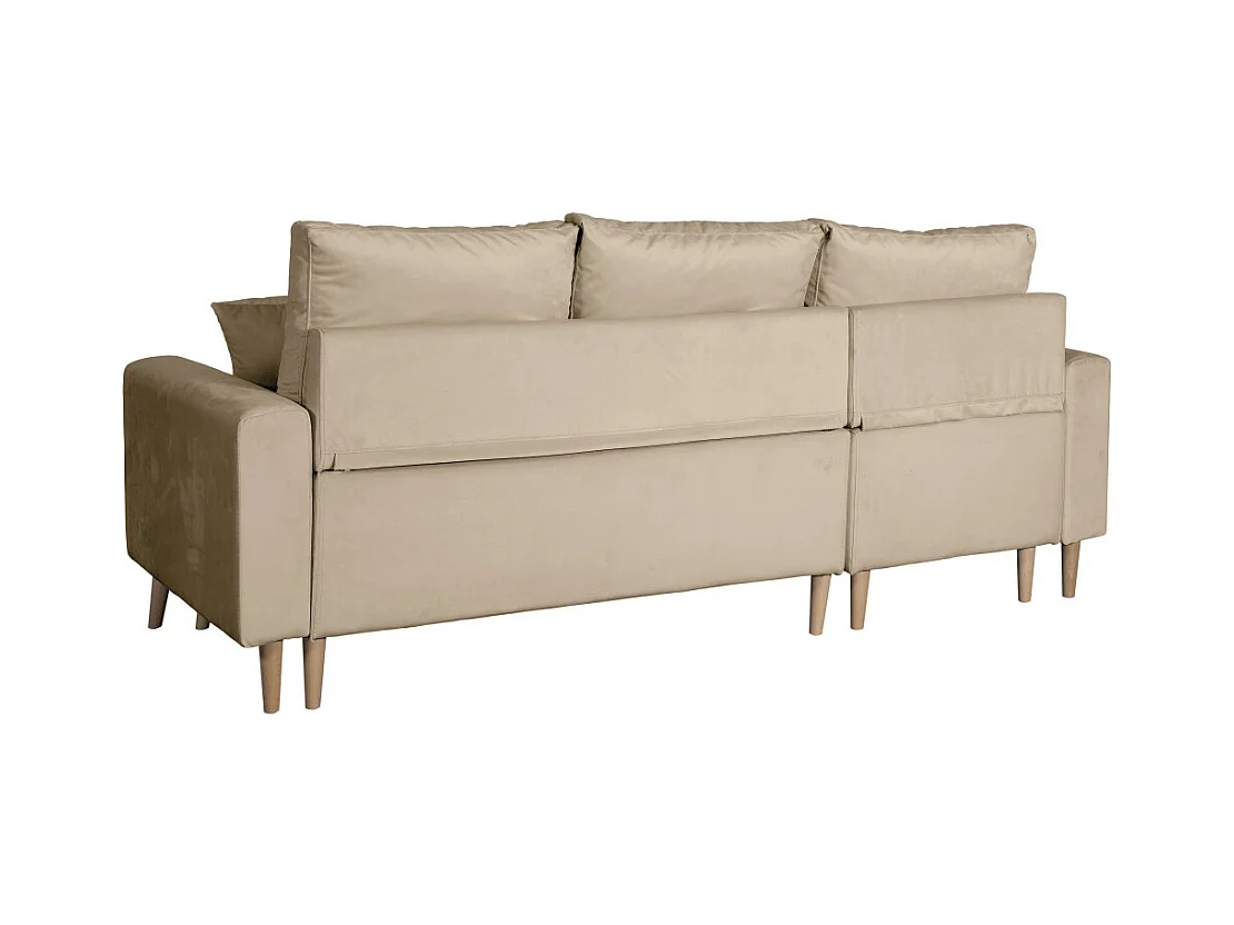 Canapé d'angle Maria scandinave réversible et convertible avec coffre en velours - Grège - L227 x 148 x 95cm - Loungitude