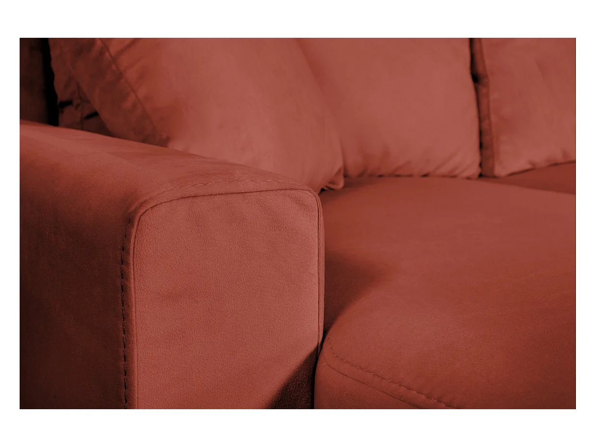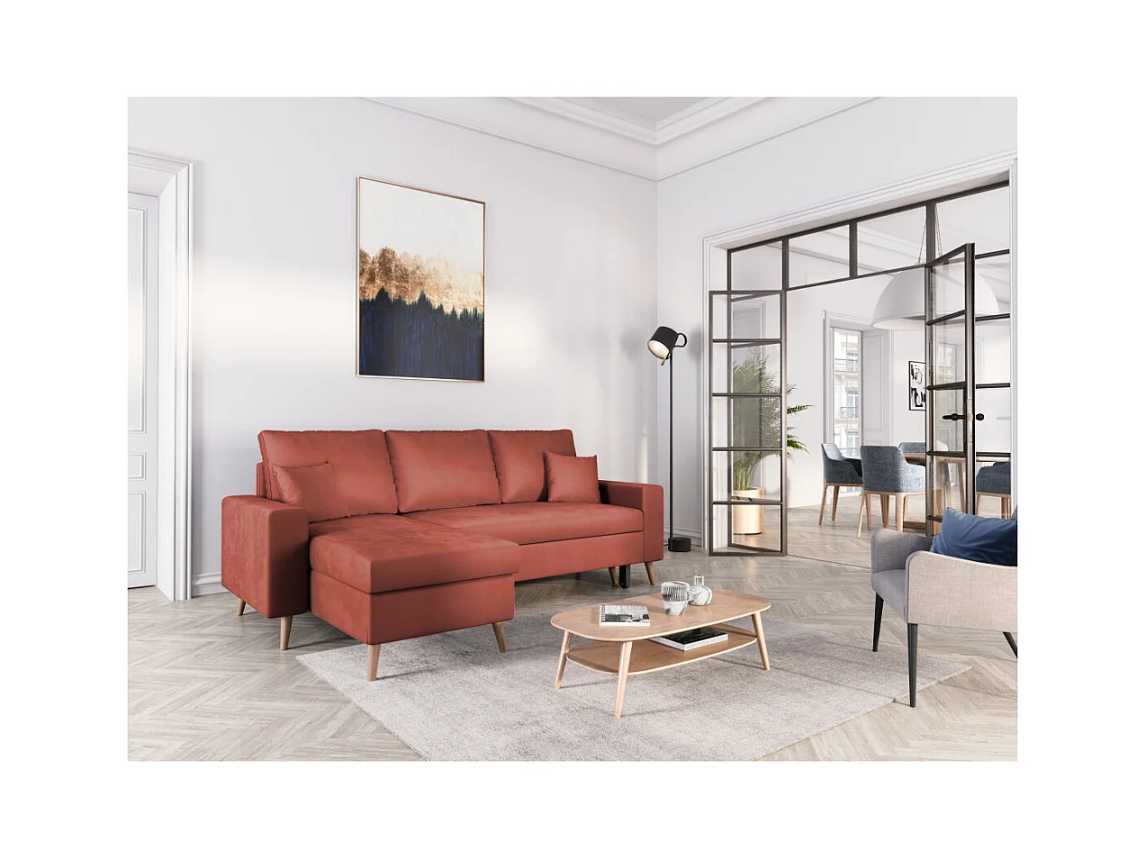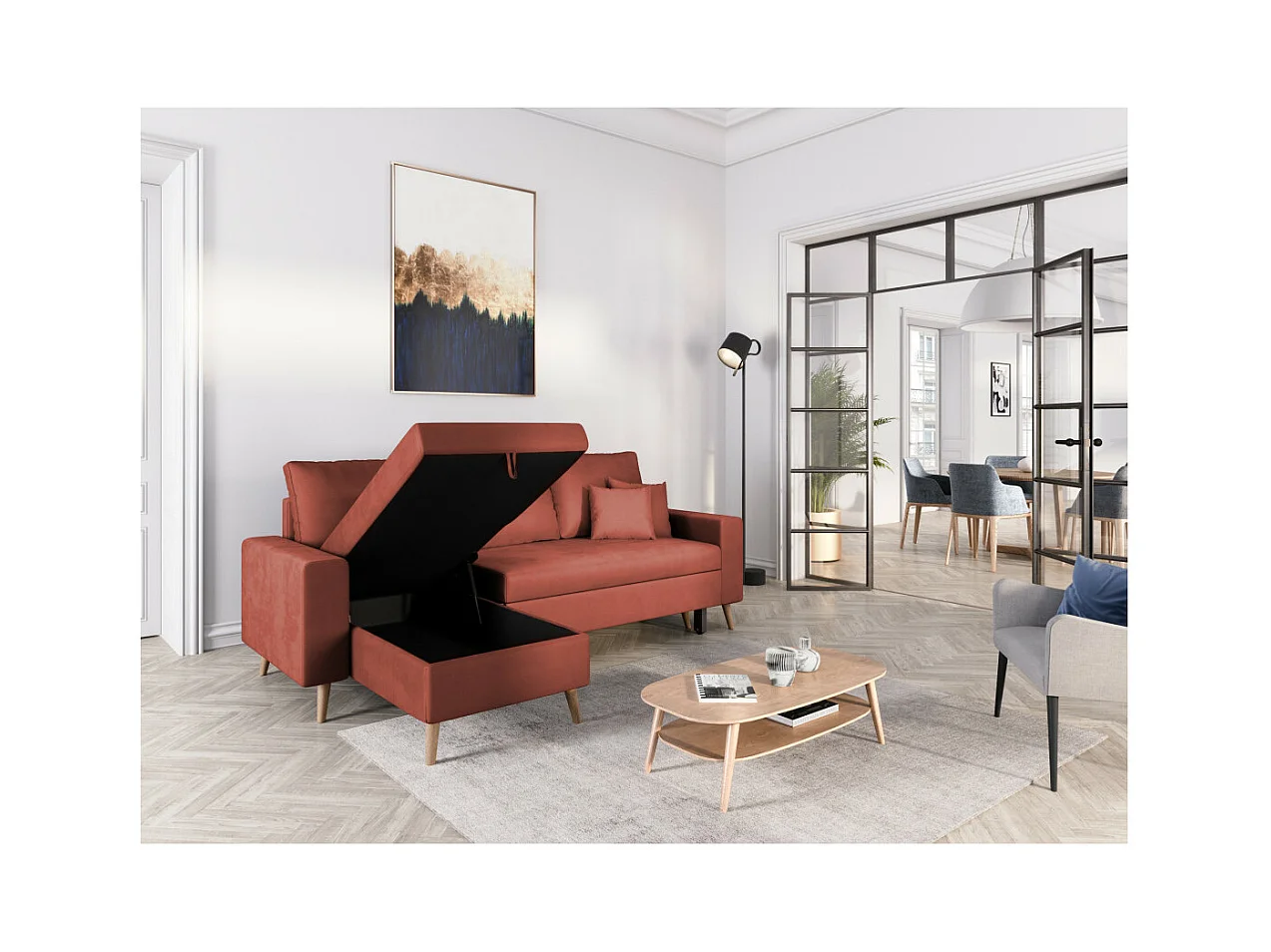 Canapé d'angle Maria scandinave réversible et convertible avec coffre en velours - Rouge brique - L227 x 148 x 95cm - Loungitude