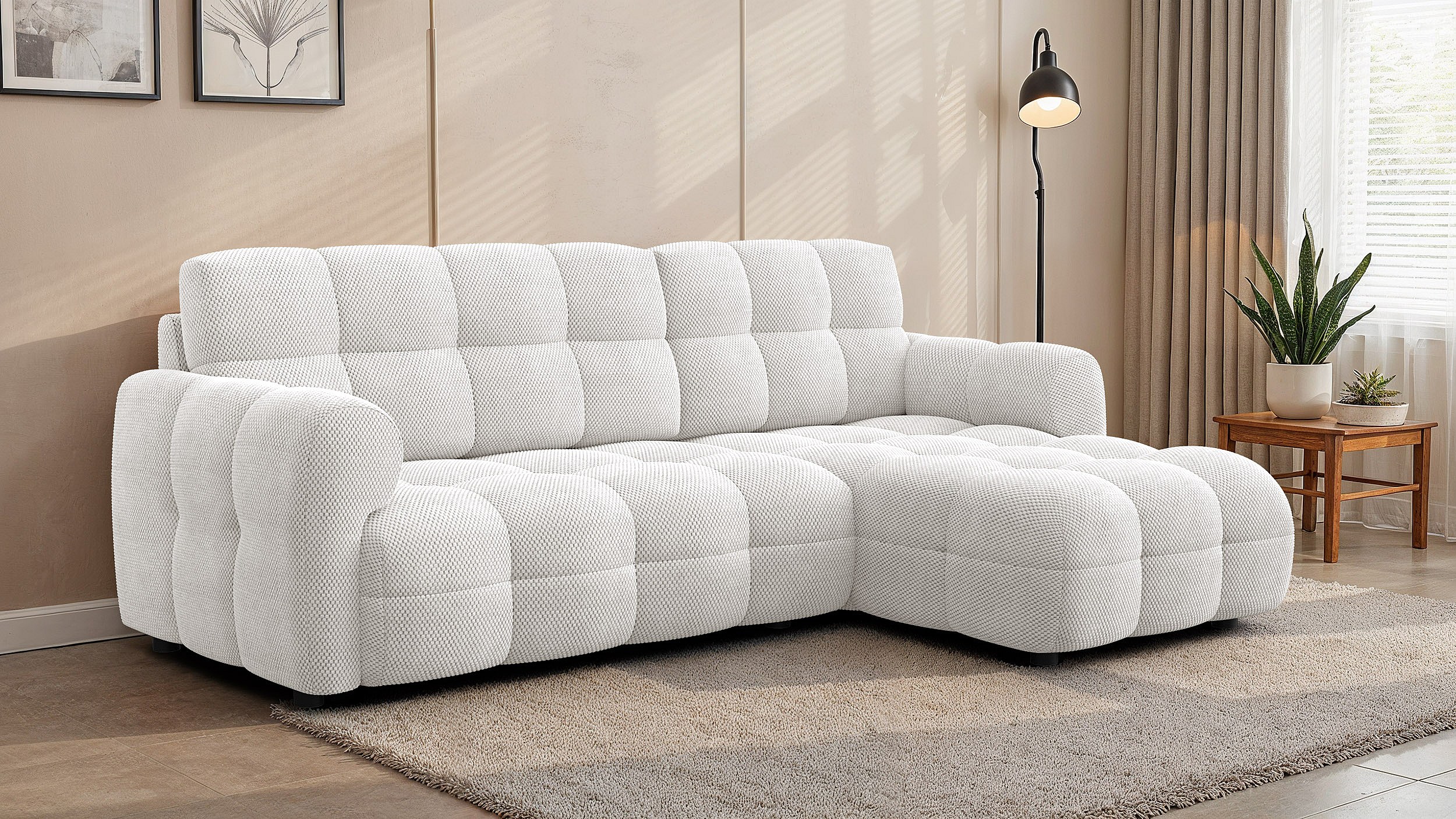 CANAPÉ D'ANGLE MELLOW 3 places, tissu crème