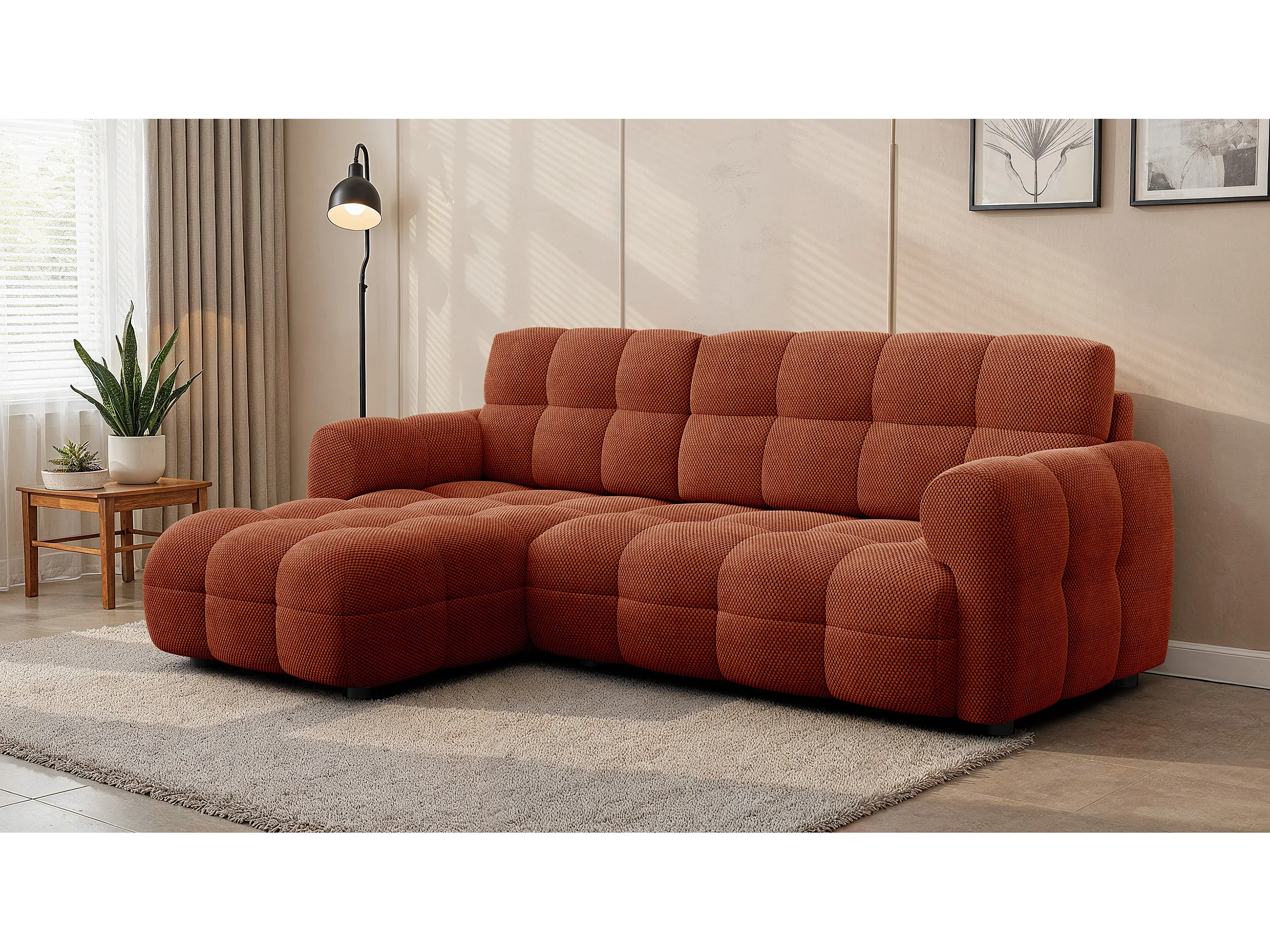 CANAPÉ D'ANGLE MELLOW 3 places, tissu orange