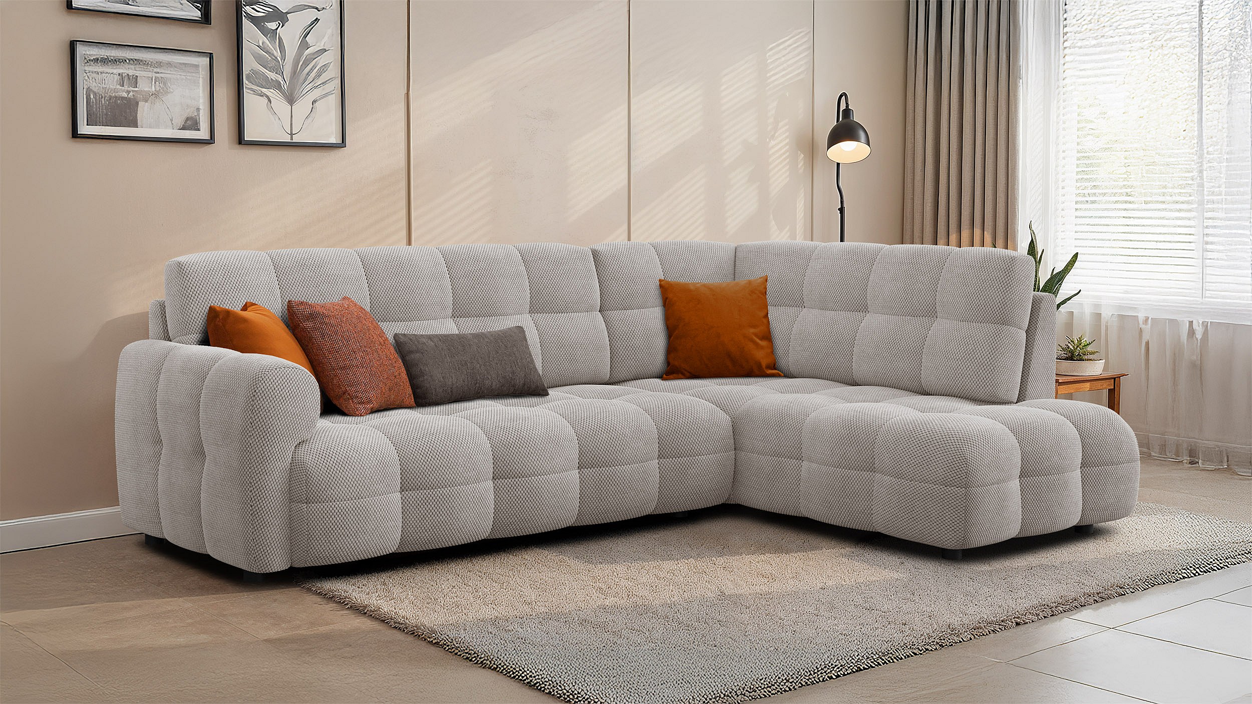 CANAPÉ D'ANGLE MELLOW 5 places, tissu beige