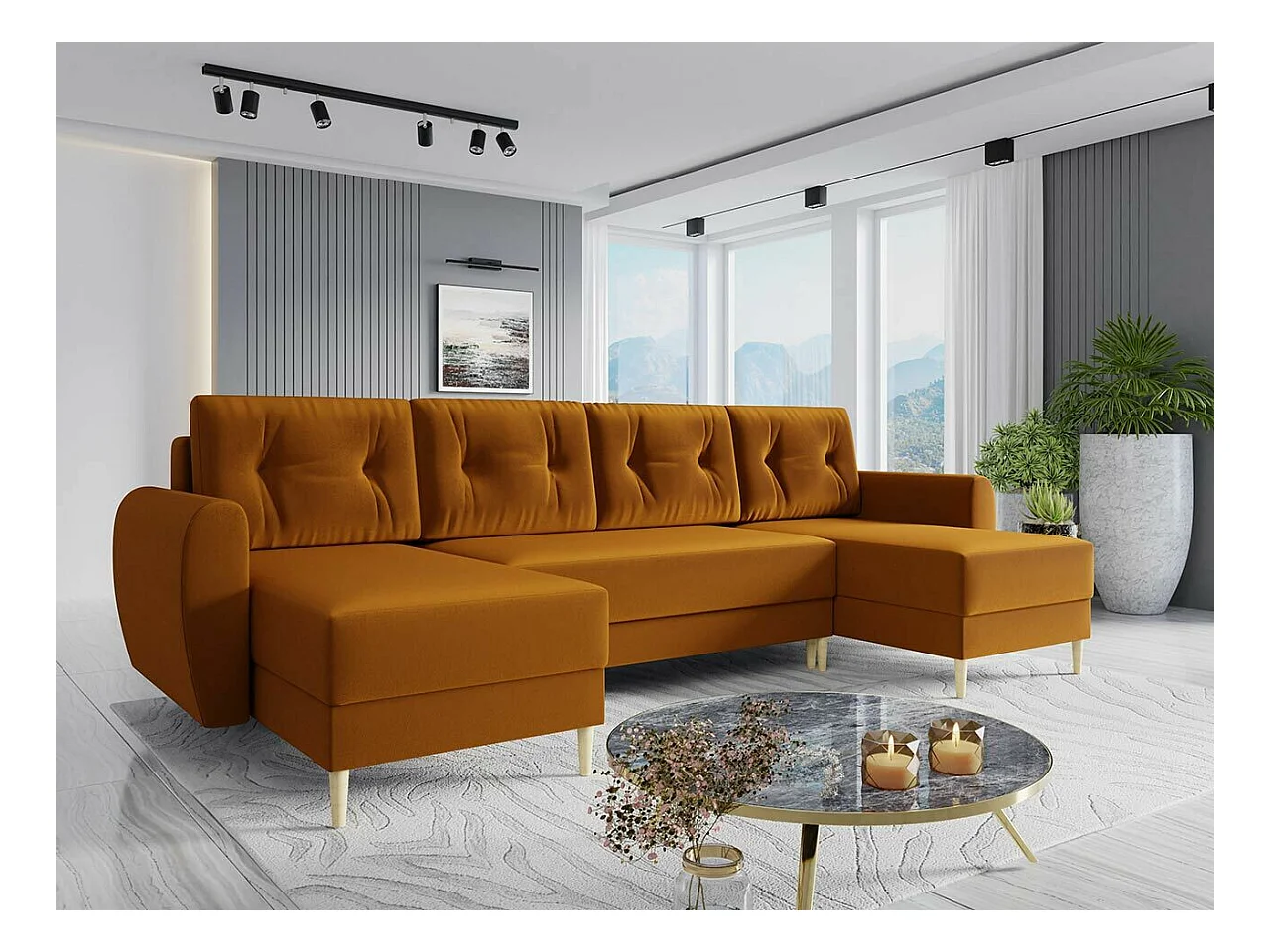 Canapé d'angle Memphis 110, Jaune, Fonction de couchage, Boîte de literie, 307x139x95cm