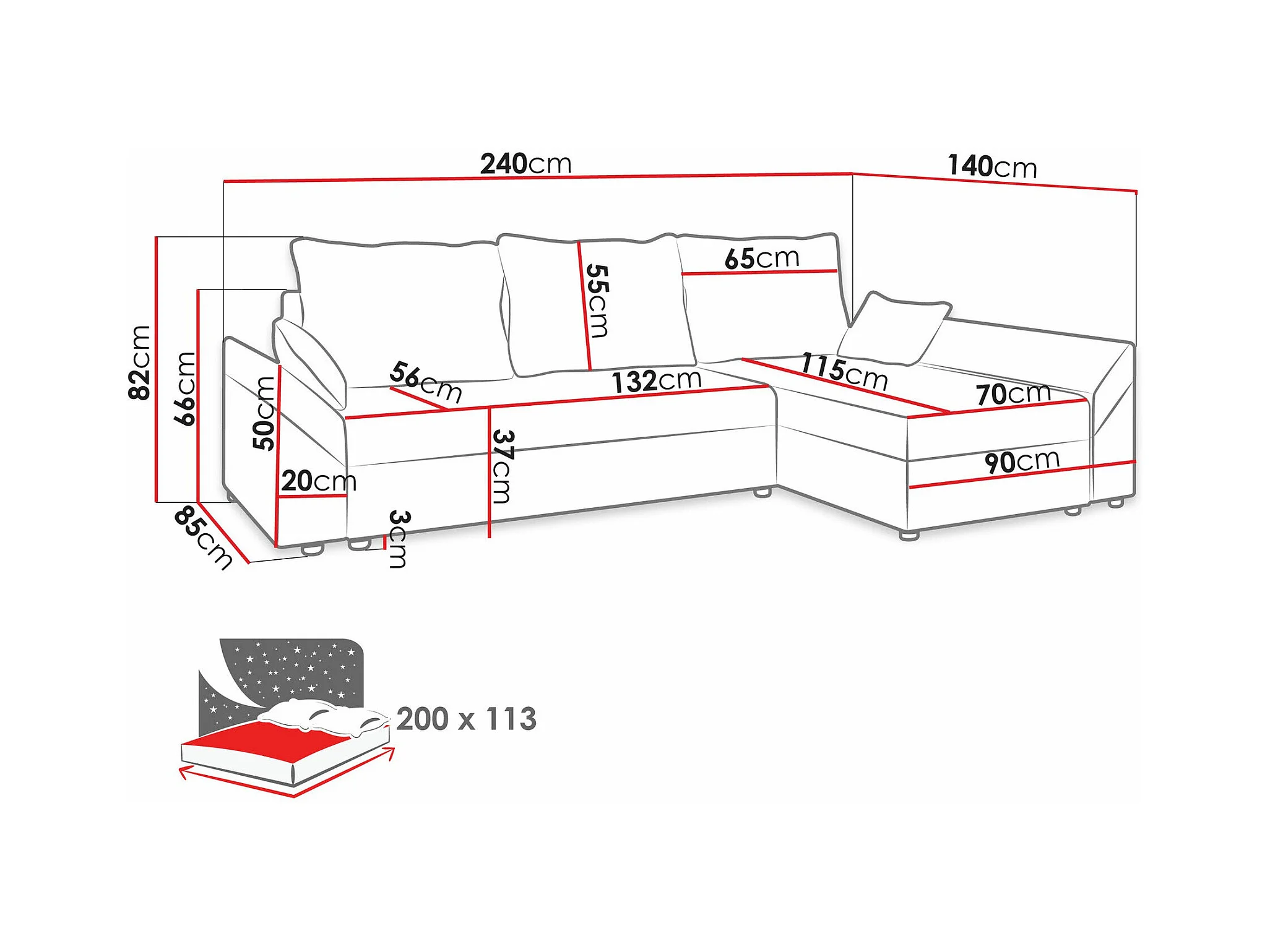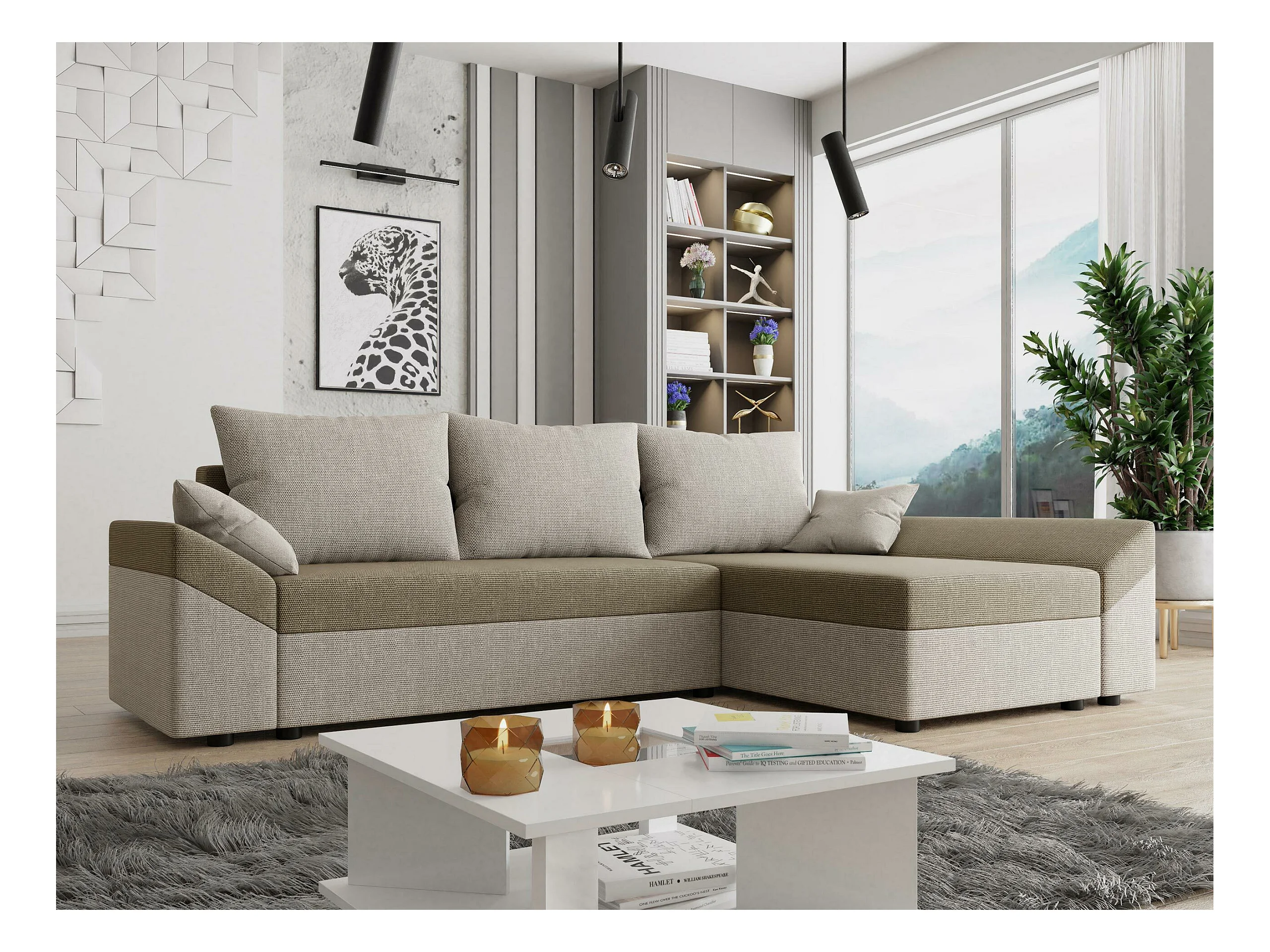 Canapé d'angle Memphis 130, Brun clair, Fonction de couchage, Boîte de literie, 240x140cm