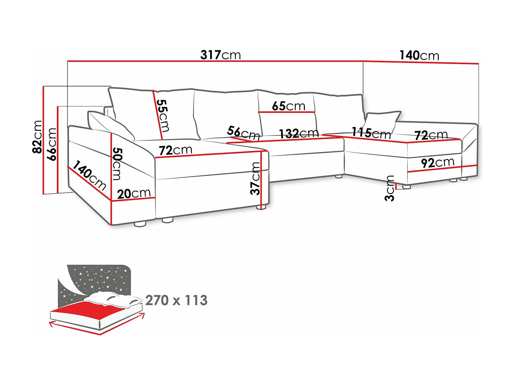 Canapé d'angle Memphis 131, Gris, Disponible, 317x140x82cm