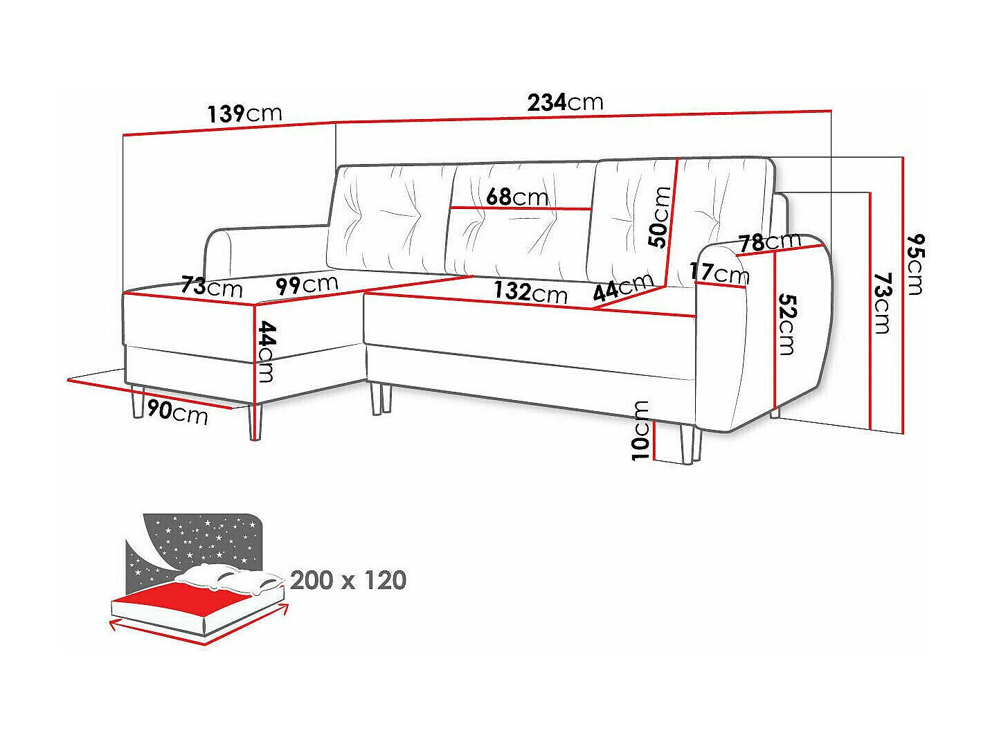Canapé d'angle Memphis 139, Bleu, Disponible, 234x139x95cm