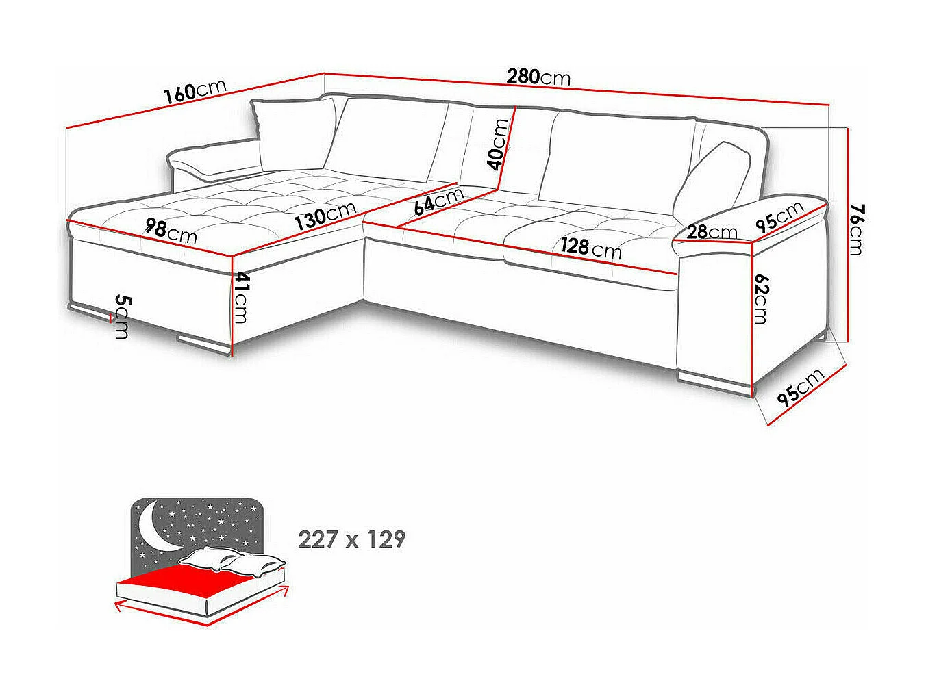 Canapé d'angle Comfivo 107, Rose, Fonction de couchage, Boîte de literie, 280x160x76cm
