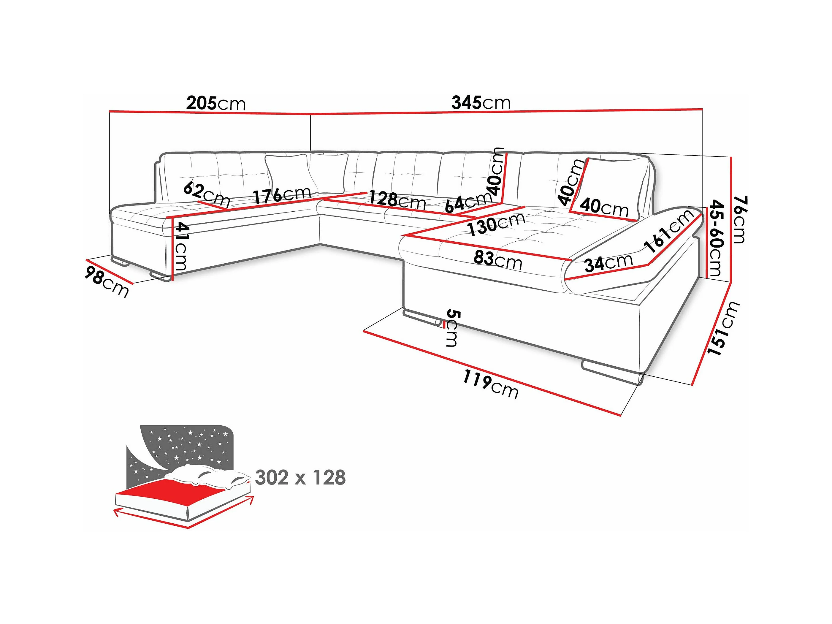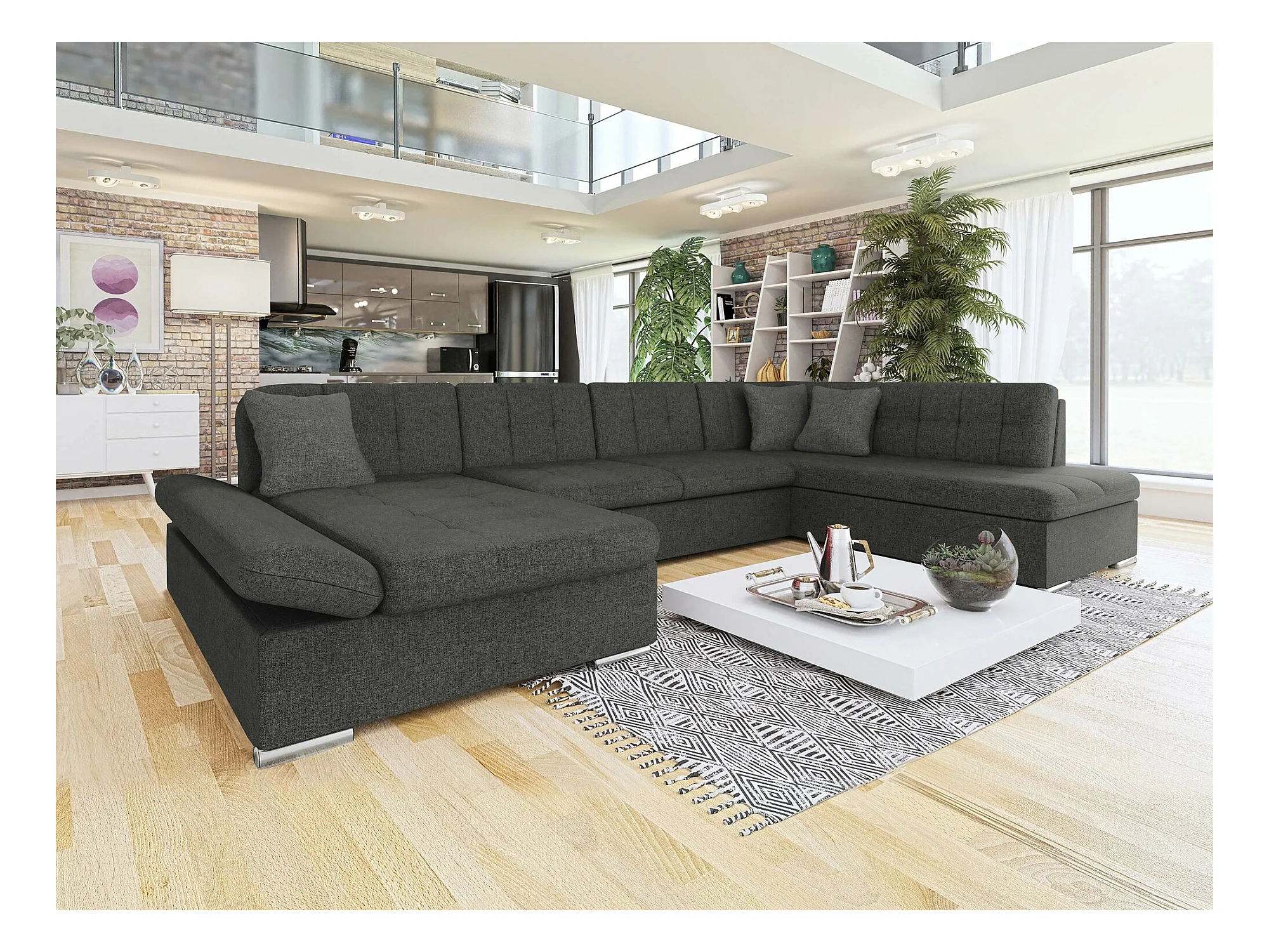 Canapé d'angle Comfivo 149, Gris, Disponible, 345x205x76cm