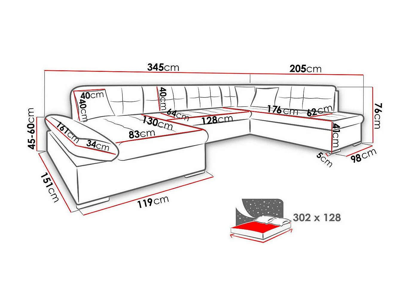 Canapé d'angle Comfivo 149, Rouge, Fonction de couchage, Boîte de literie, 345x205x76cm