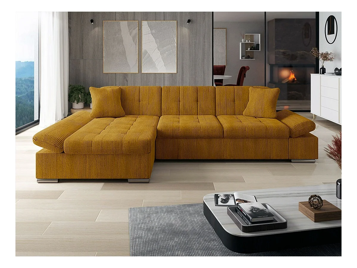 Canapé d'angle Comfivo 152, Jaune, Fonction de couchage, Boîte de literie, 278x161x76cm