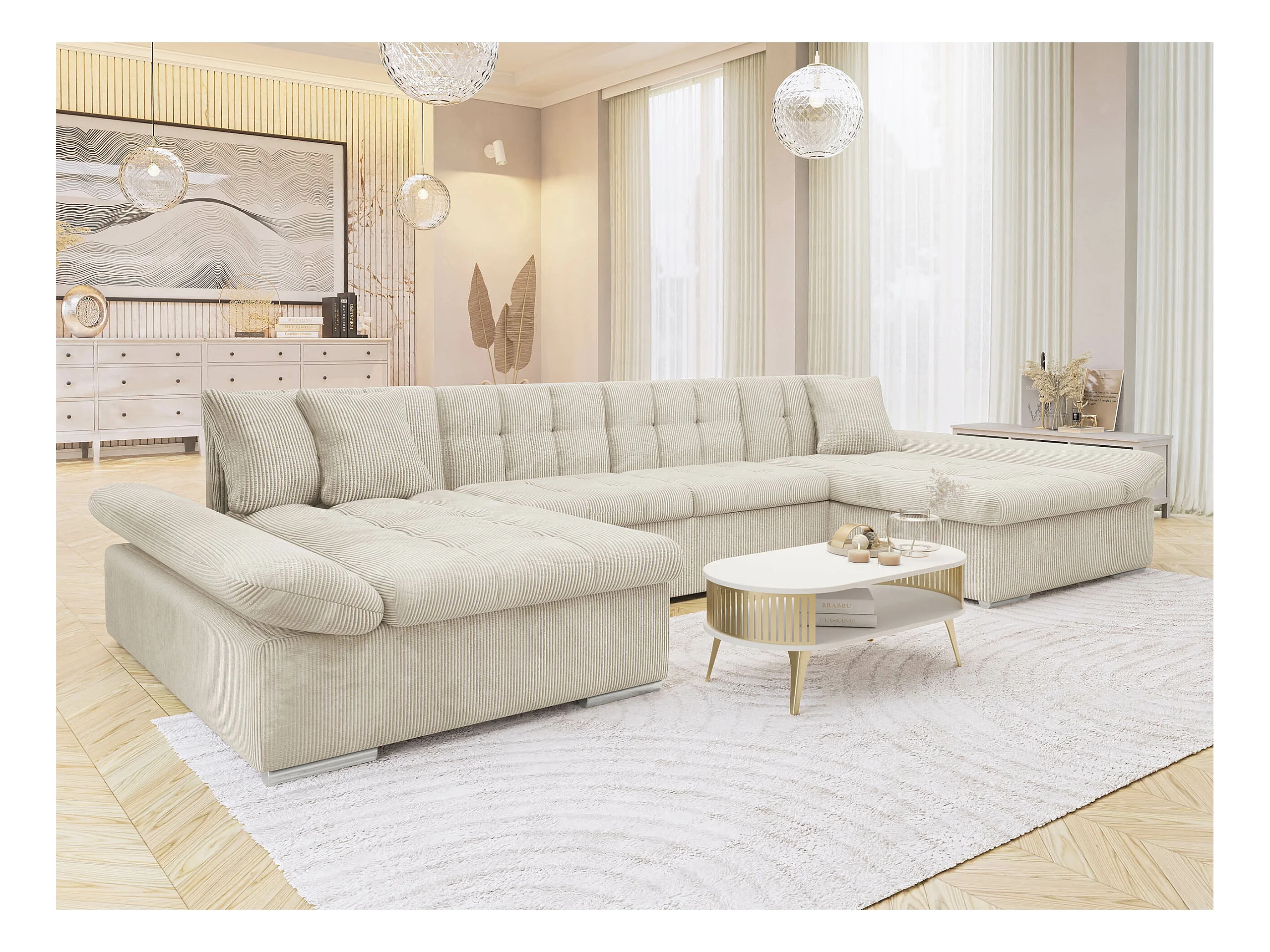 Canapé d'angle Comfivo 155, Brun clair, Disponible, 360x160x75cm