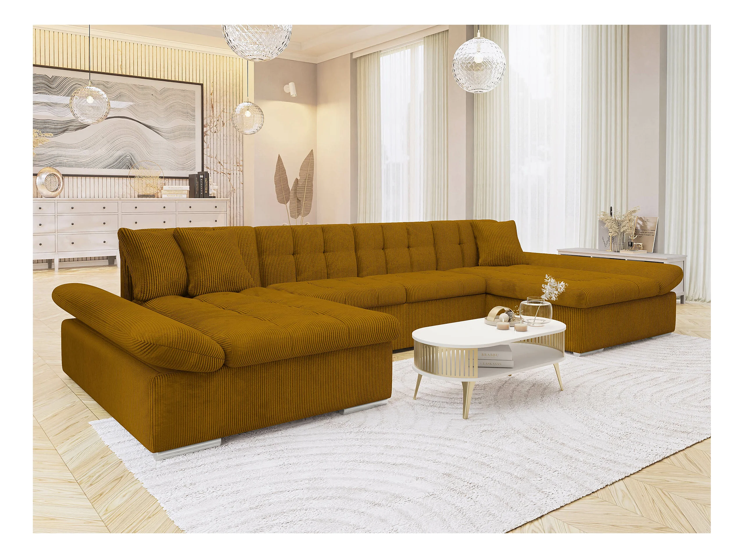 Canapé d'angle Comfivo 155, Jaune, Fonction de couchage, Boîte de literie, 360x160x75cm