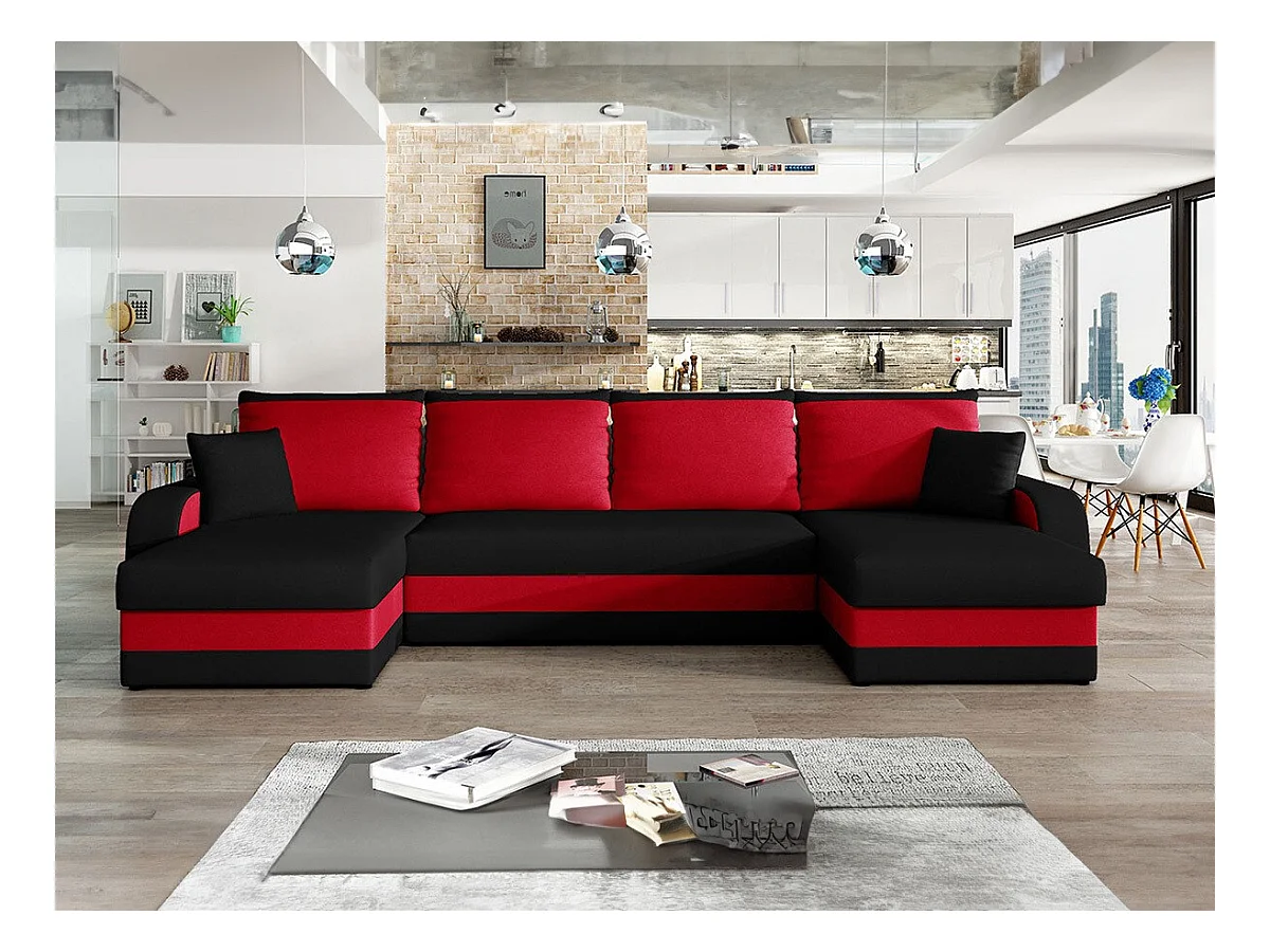 Canapé d'angle Comfivo 233, Rouge, Fonction de couchage, Boîte de literie, 304x140x80cm