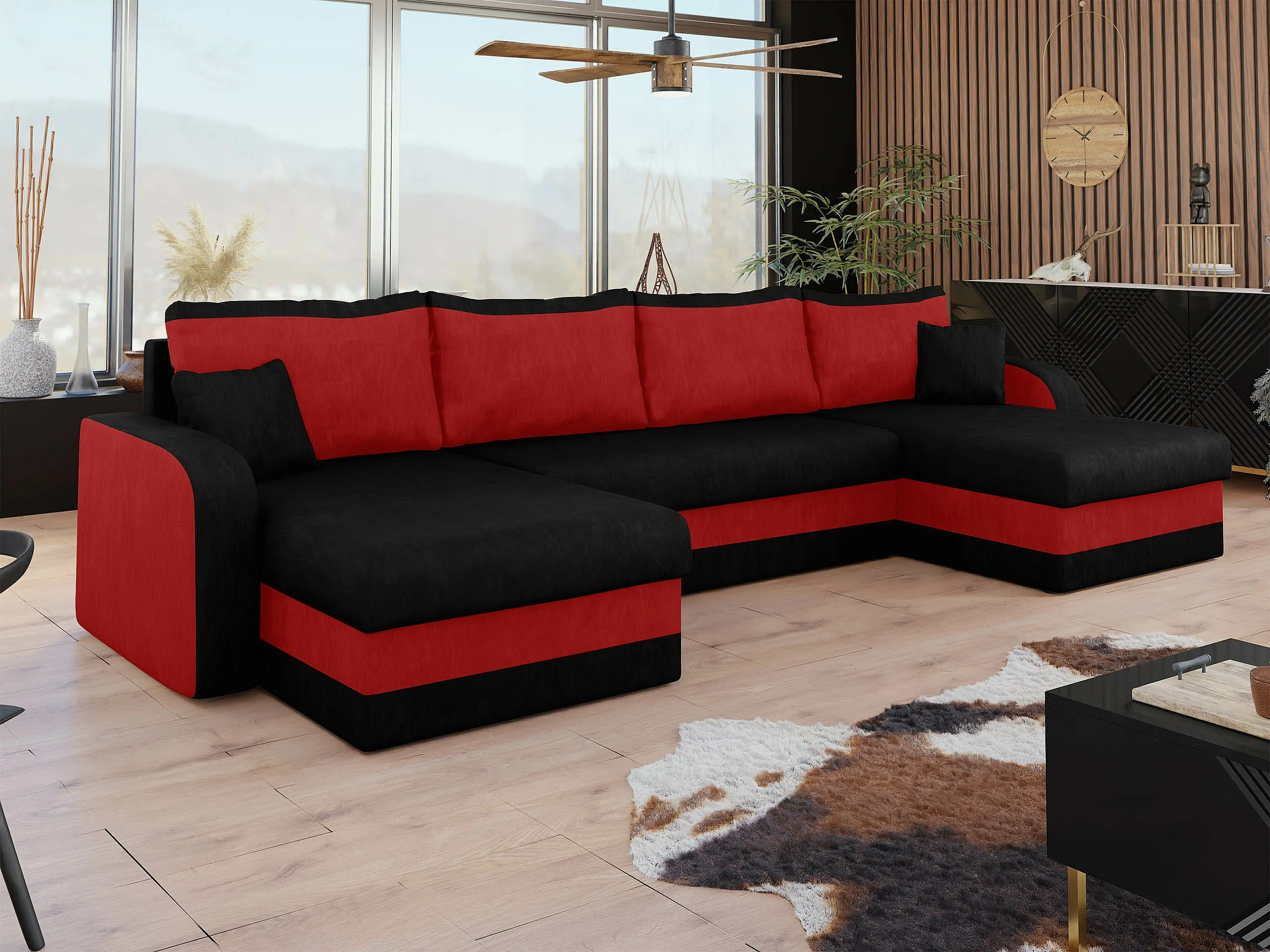 Canapé d'angle Comfivo 500, Rouge, Disponible, 304x140x80cm