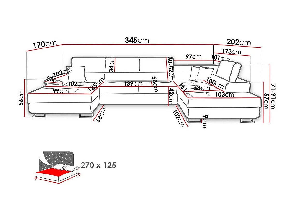 Canapé d'angle Comfivo 241, Turquoise, Fonction de couchage, Boîte de literie, 345x202cm
