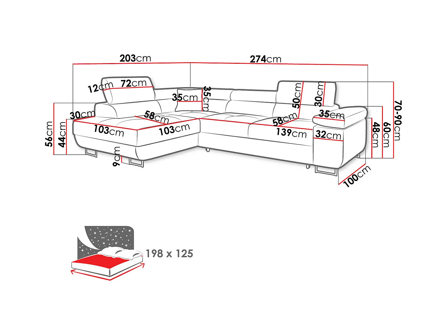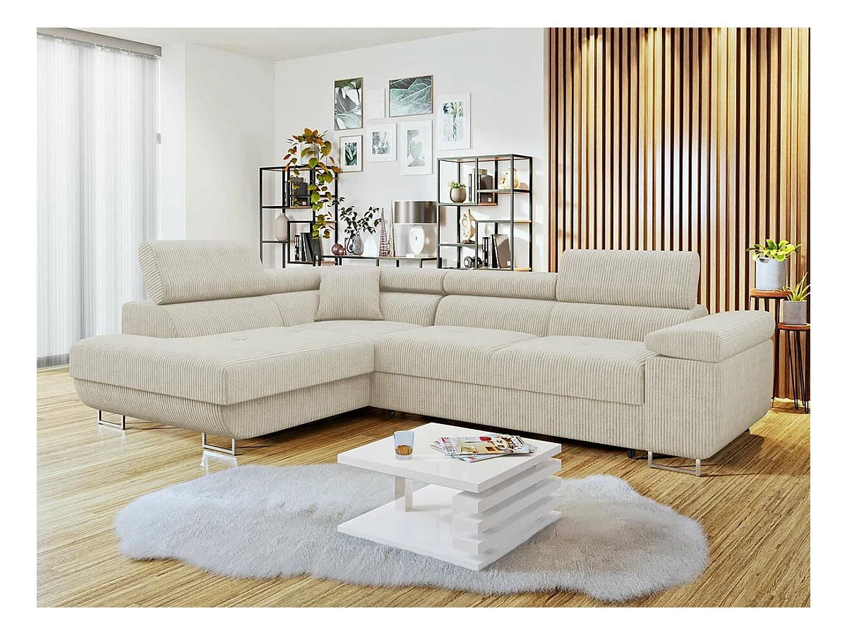 Canapé d'angle Comfivo Eliferu 100, Brun clair, Fonction de couchage, Boîte de literie,