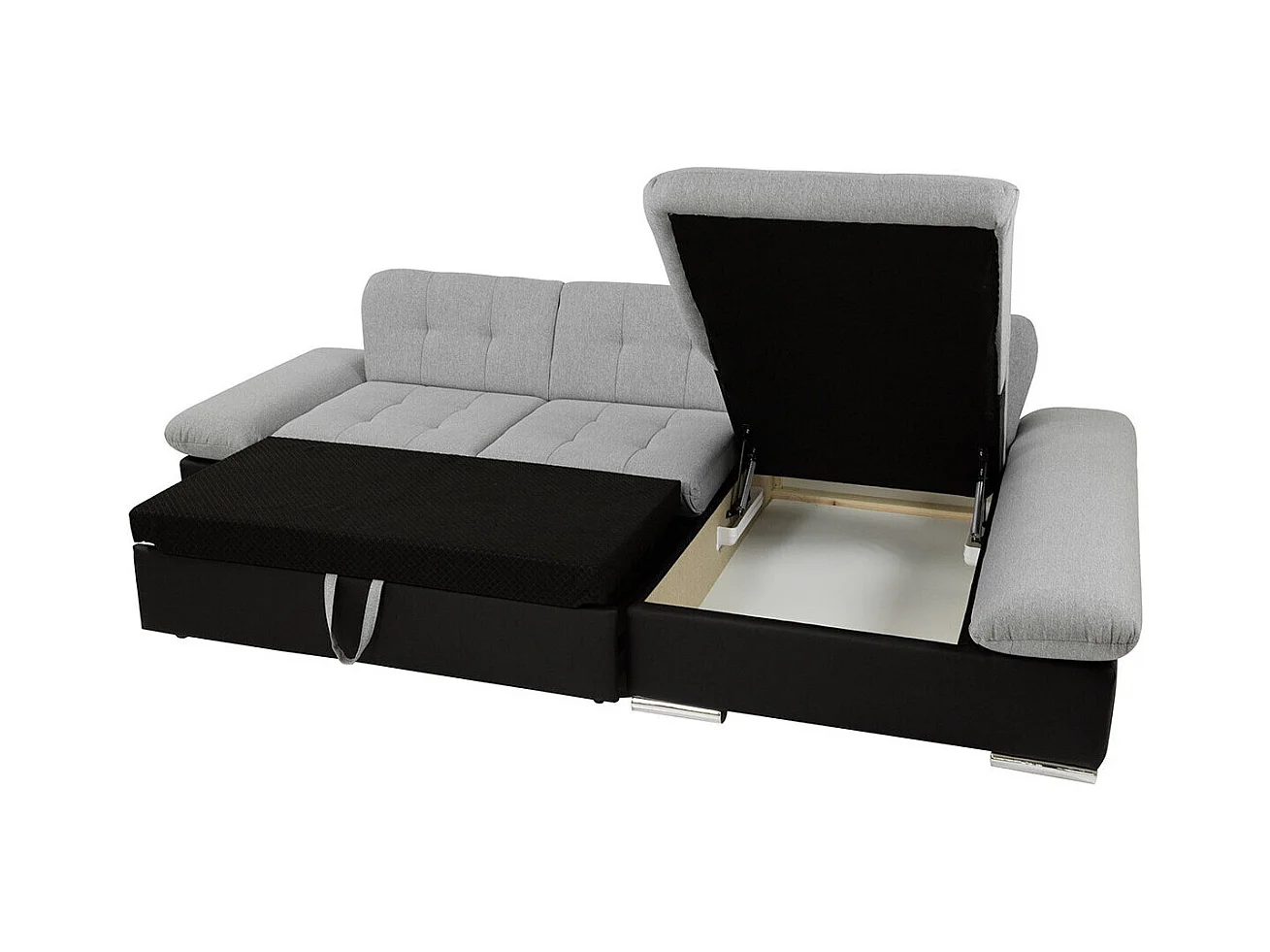 Canapé d'angle Comfivo 250, Blanc, Fonction de couchage, Boîte de literie, 278x161x76cm
