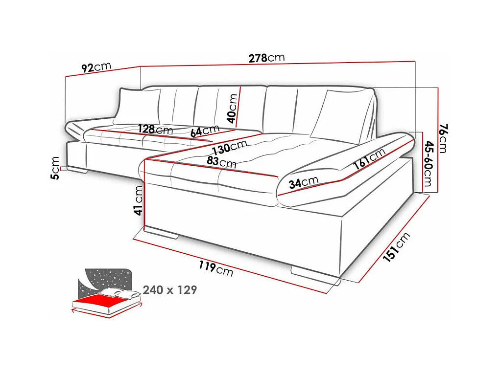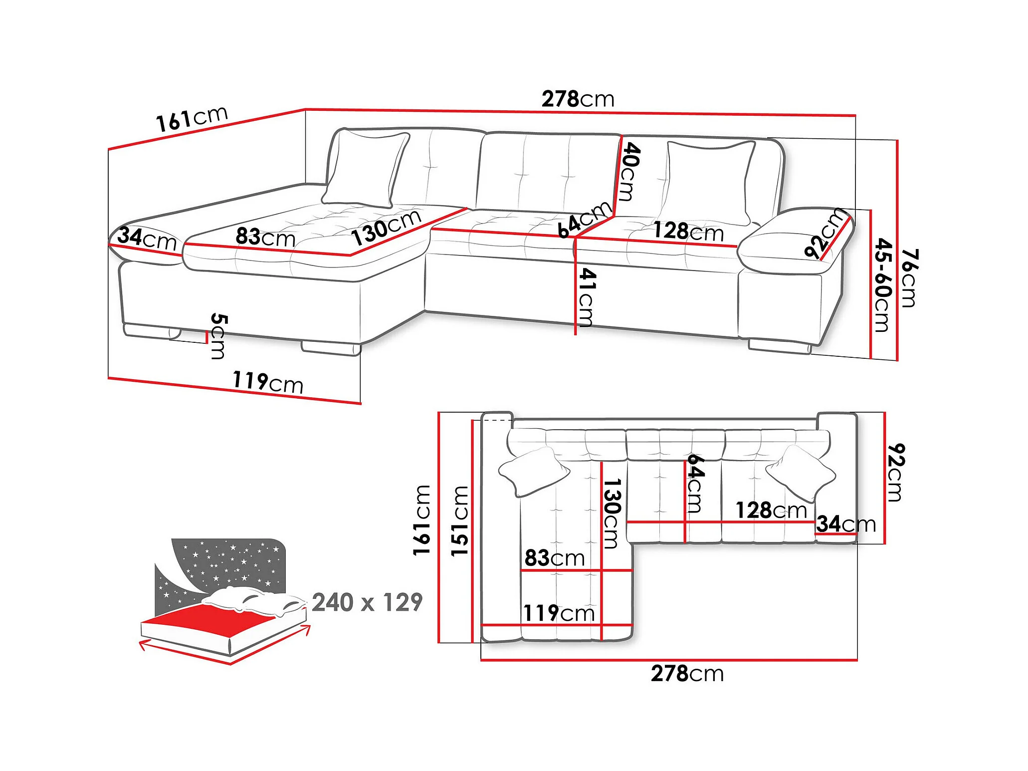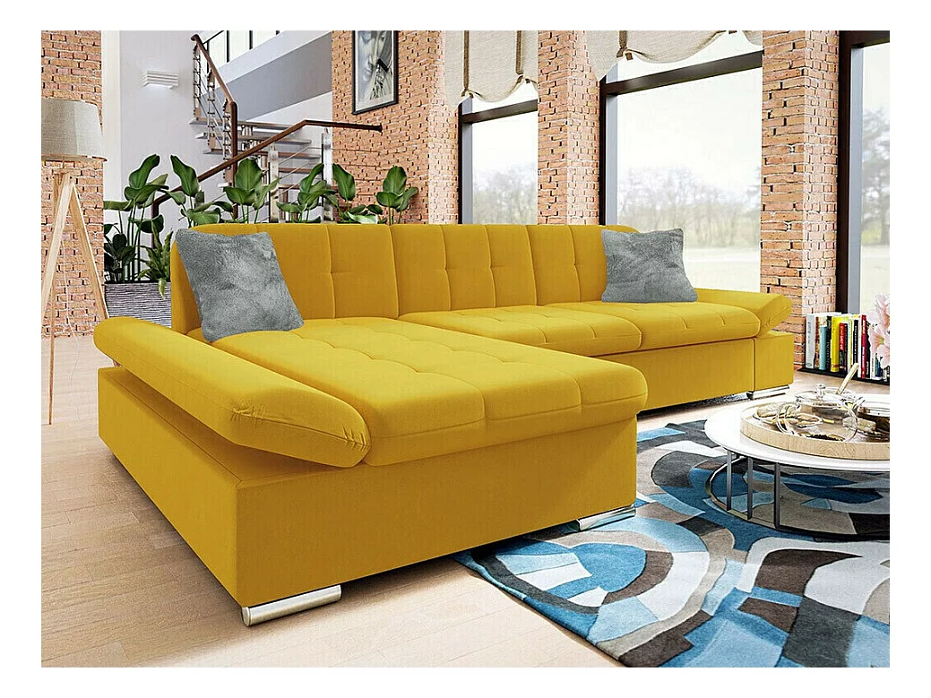 Canapé d'angle Comfivo 250, Jaune, Fonction de couchage, Boîte de literie, 278x161x76cm