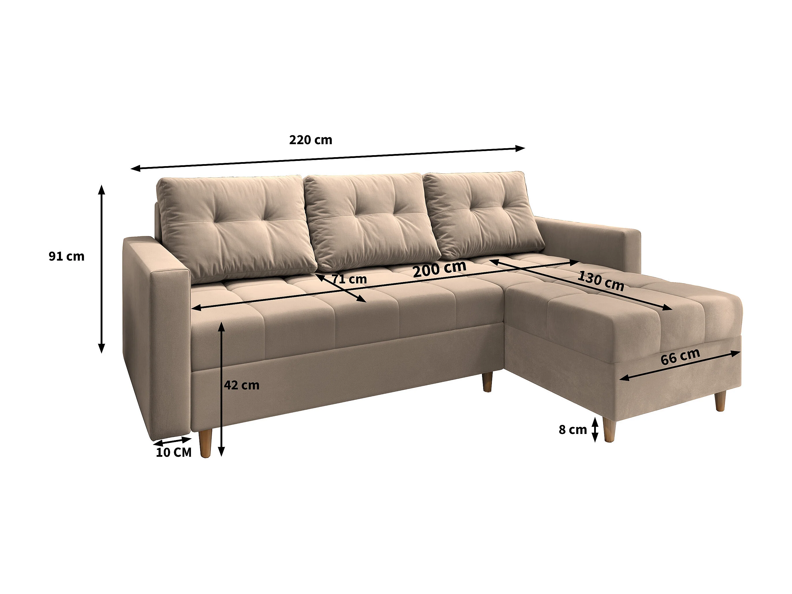 Canapé d'angle MILO Jaune en peluche avec fonction de couchage