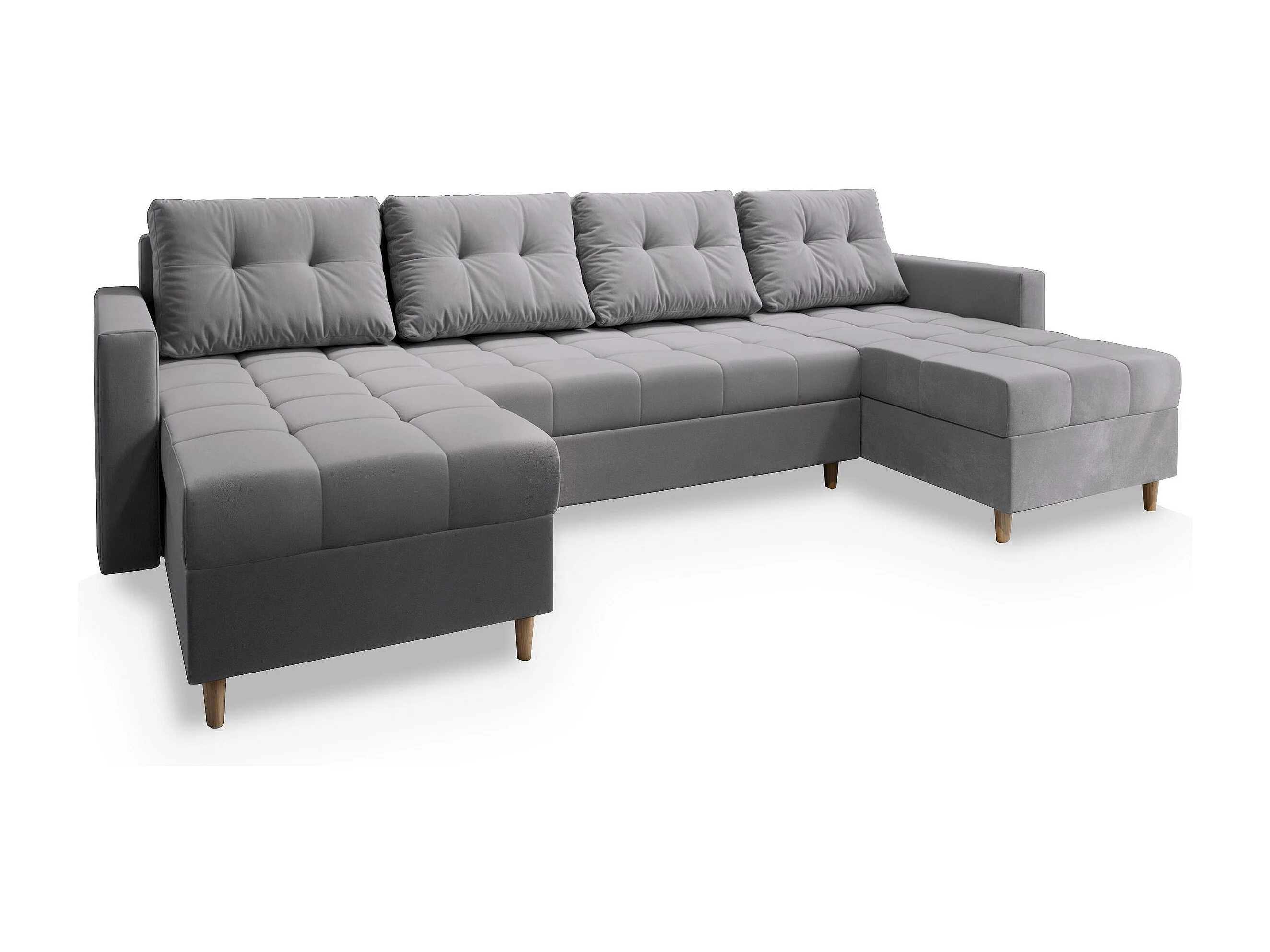 Canapé d'angle MILO Gris clair en peluche avec fonction de couchage