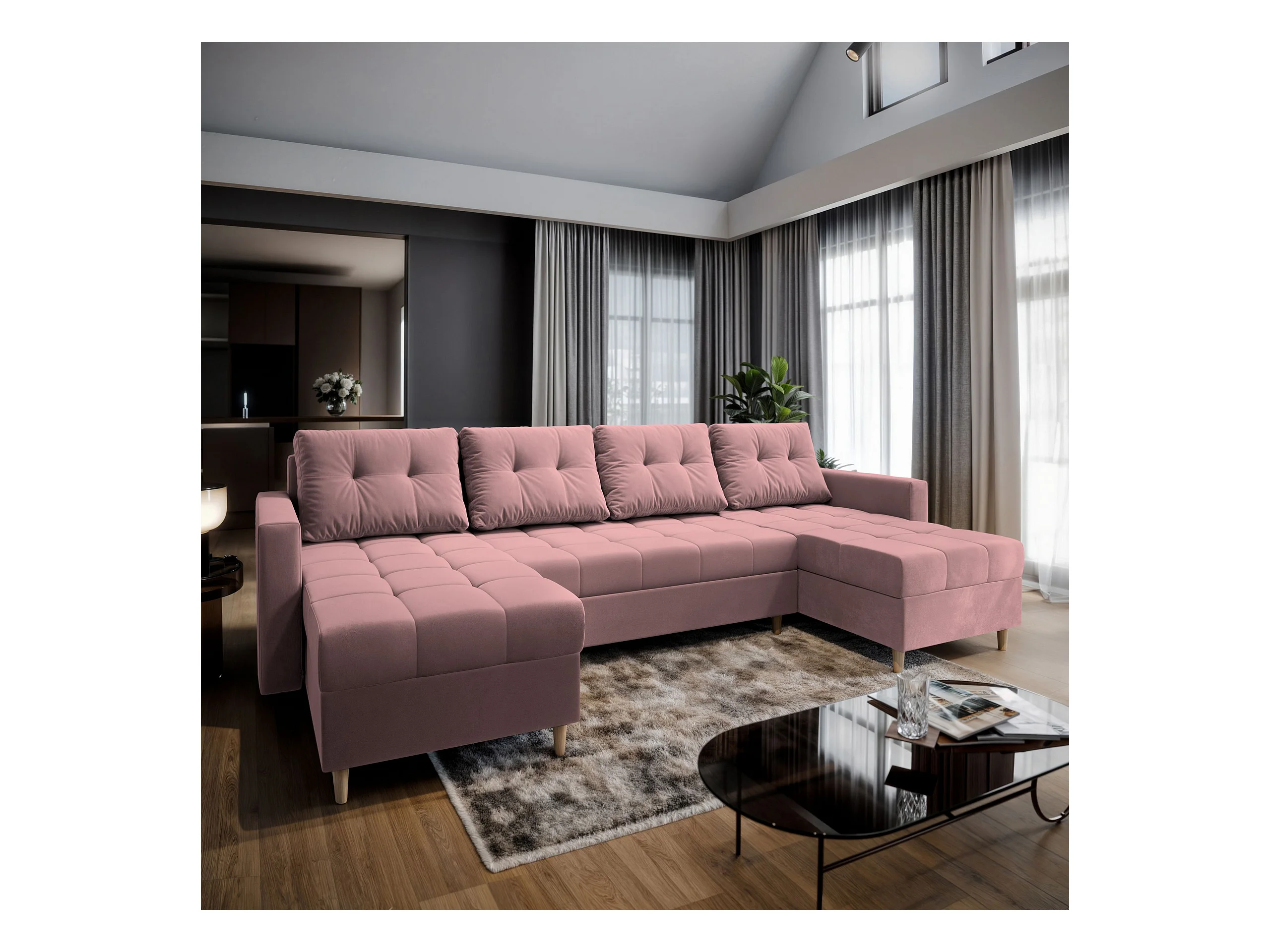 Canapé d'angle MILO Rose poudré en peluche avec fonction de couchage