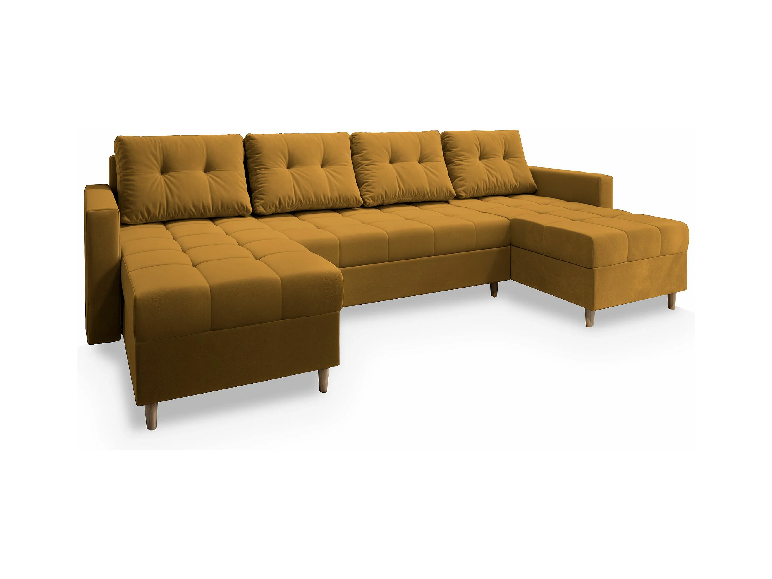 Canapé d'angle MILO Jaune en peluche avec fonction de couchage