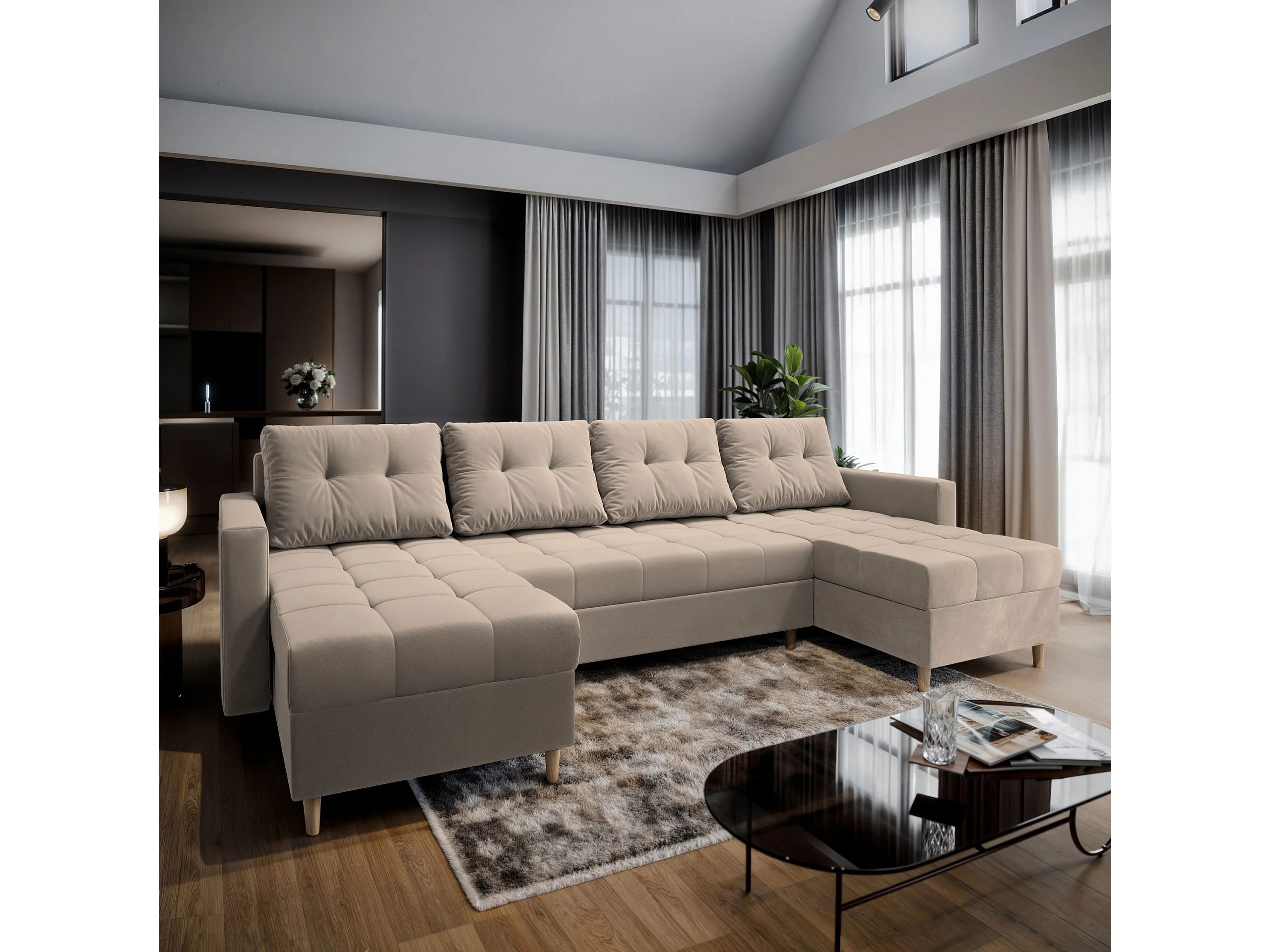 Canapé d'angle MILO Beige en peluche avec fonction de couchage