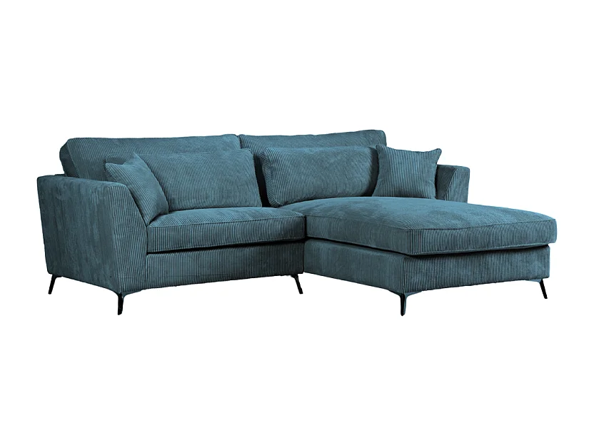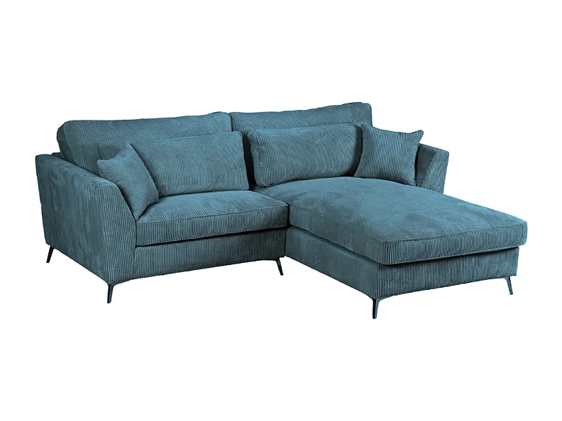 Canapé d'angle mini Isla droit velours côtelé bleu