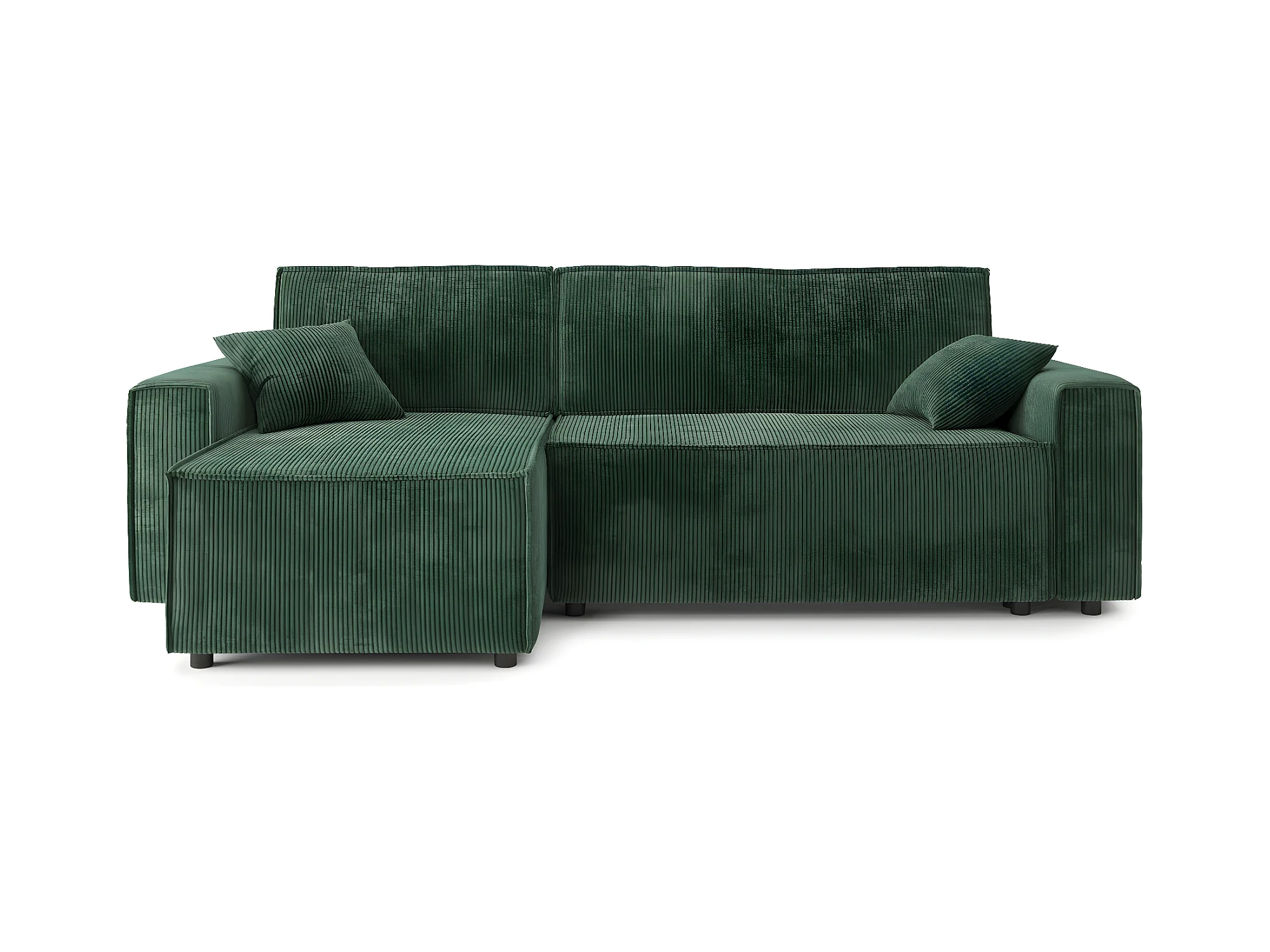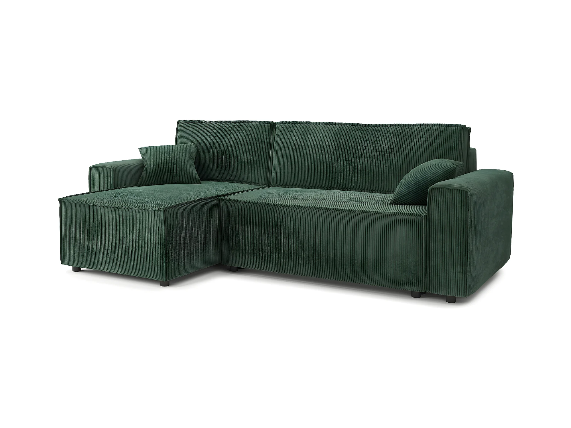 Canapé d'angle MIRA convertible et réversible velours côtelé vert