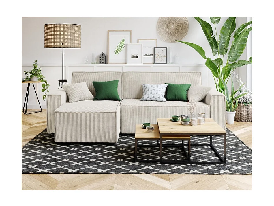 Canapé d'angle MIRAGE convertible et réversible velours côtelé beige