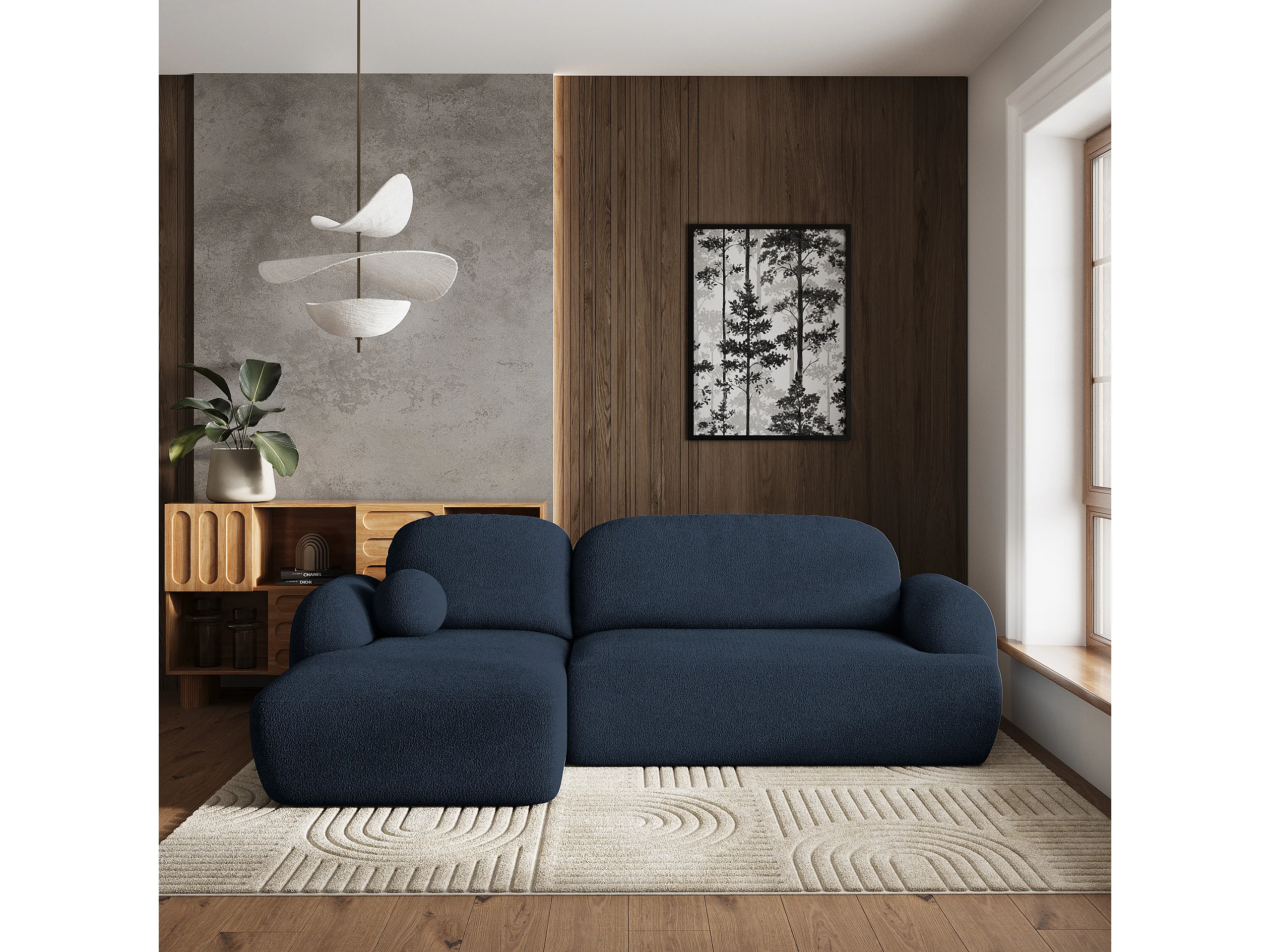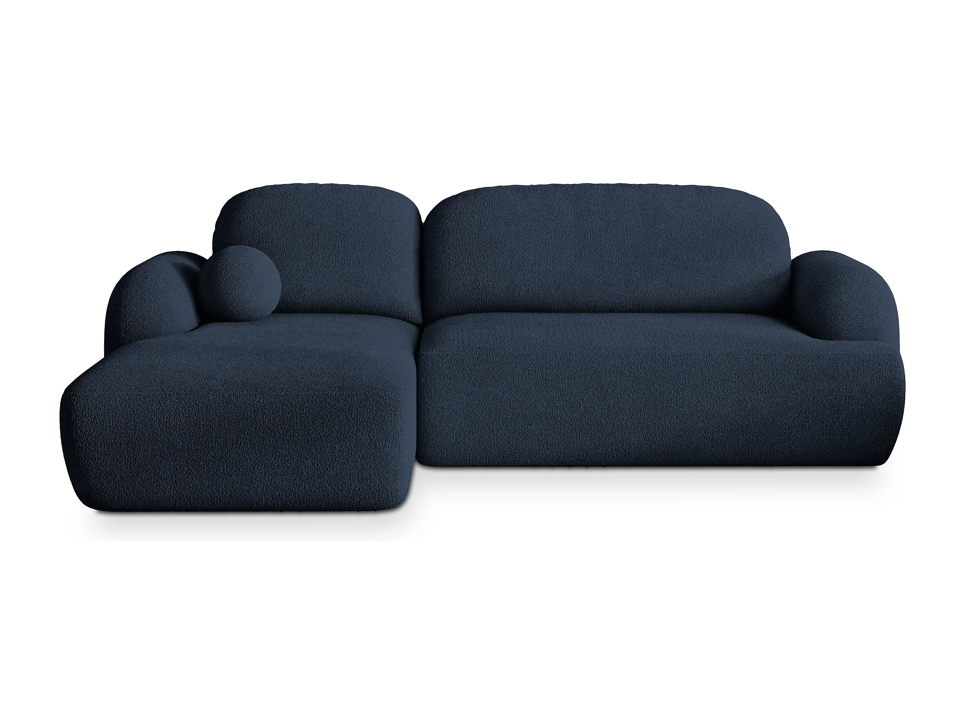 Canapé d'angle MODENZA Bleu en bouclé avec fonction de couchage