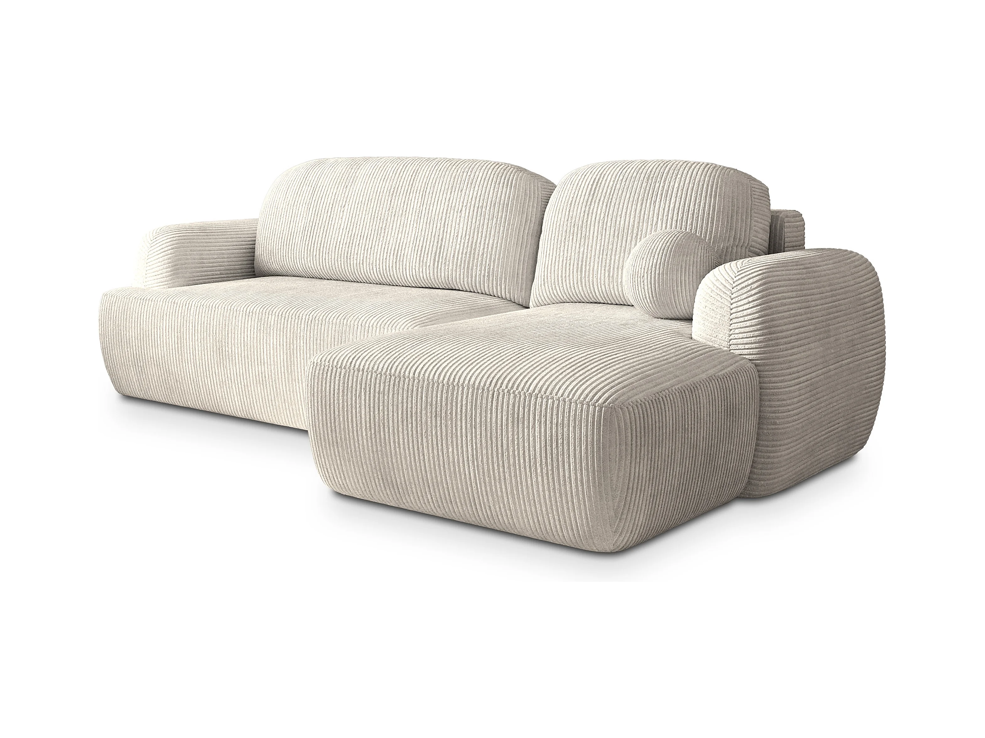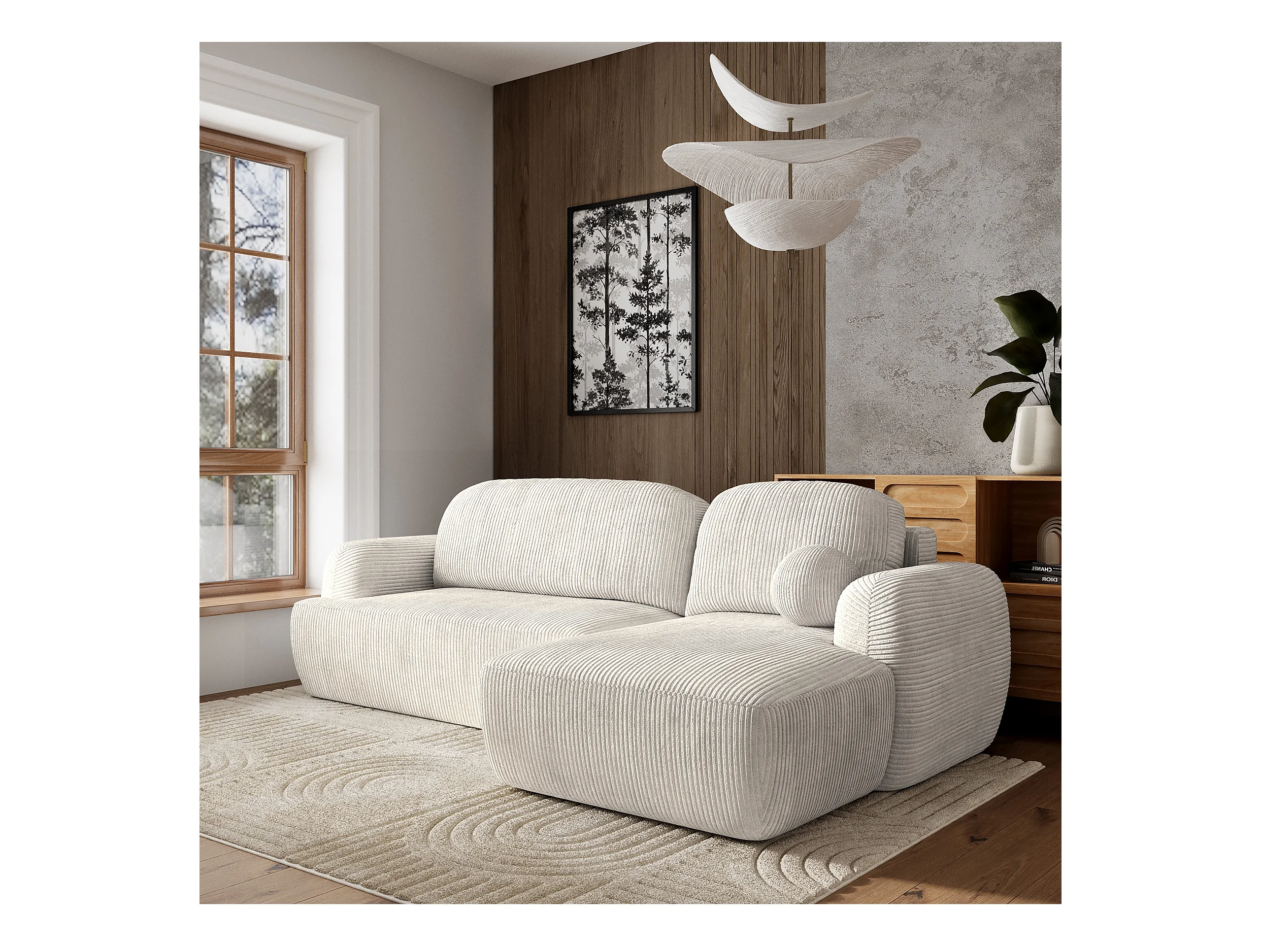 Canapé d'angle MODENZA Crème en velours côtelé avec fonction de couchage