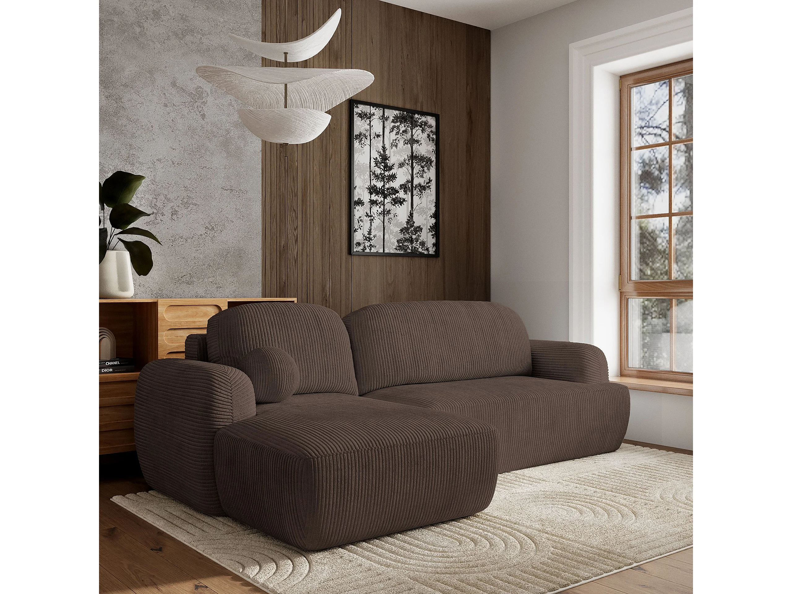Canapé d'angle MODENZA Marron en velours côtelé avec fonction de couchage