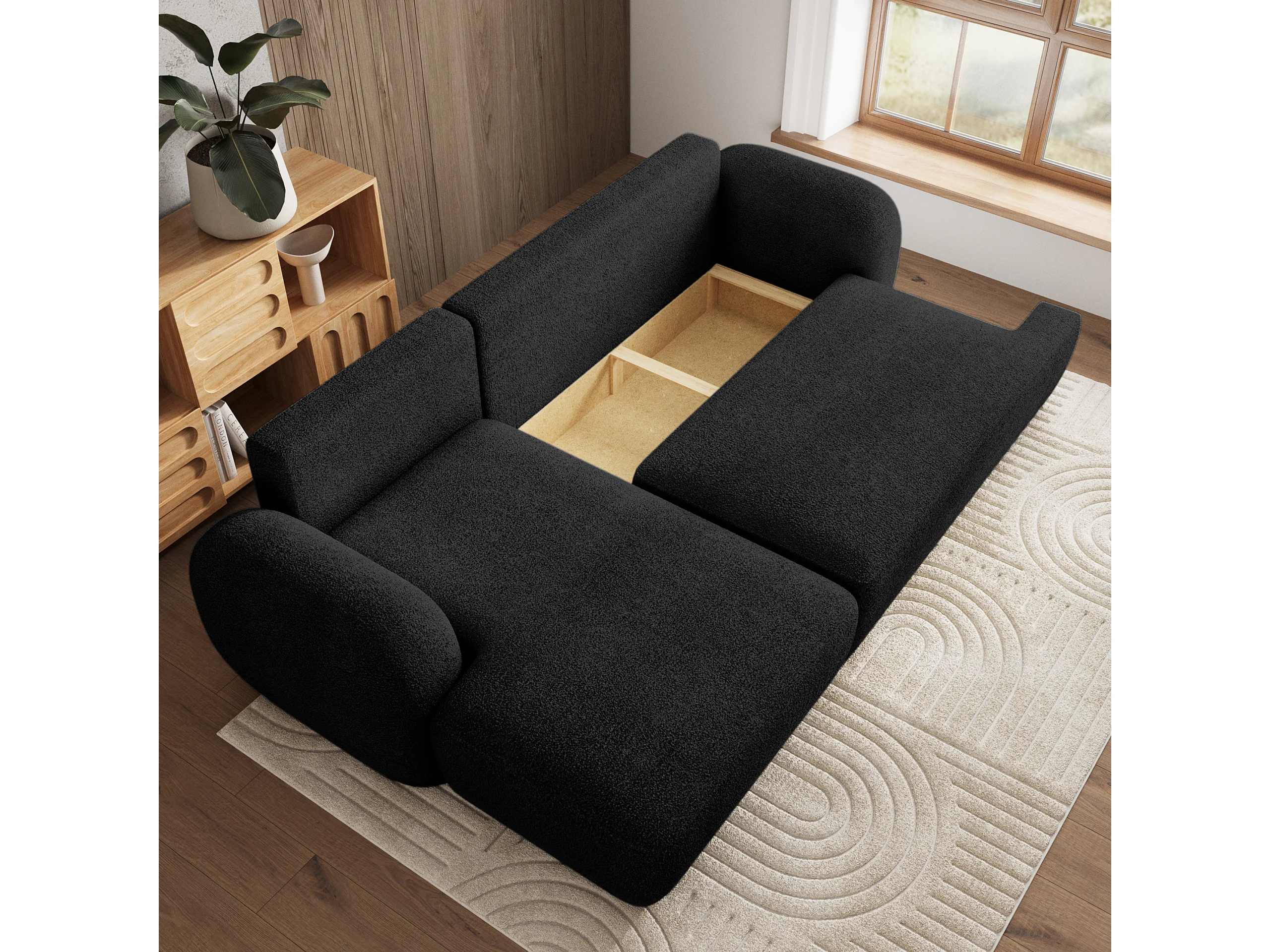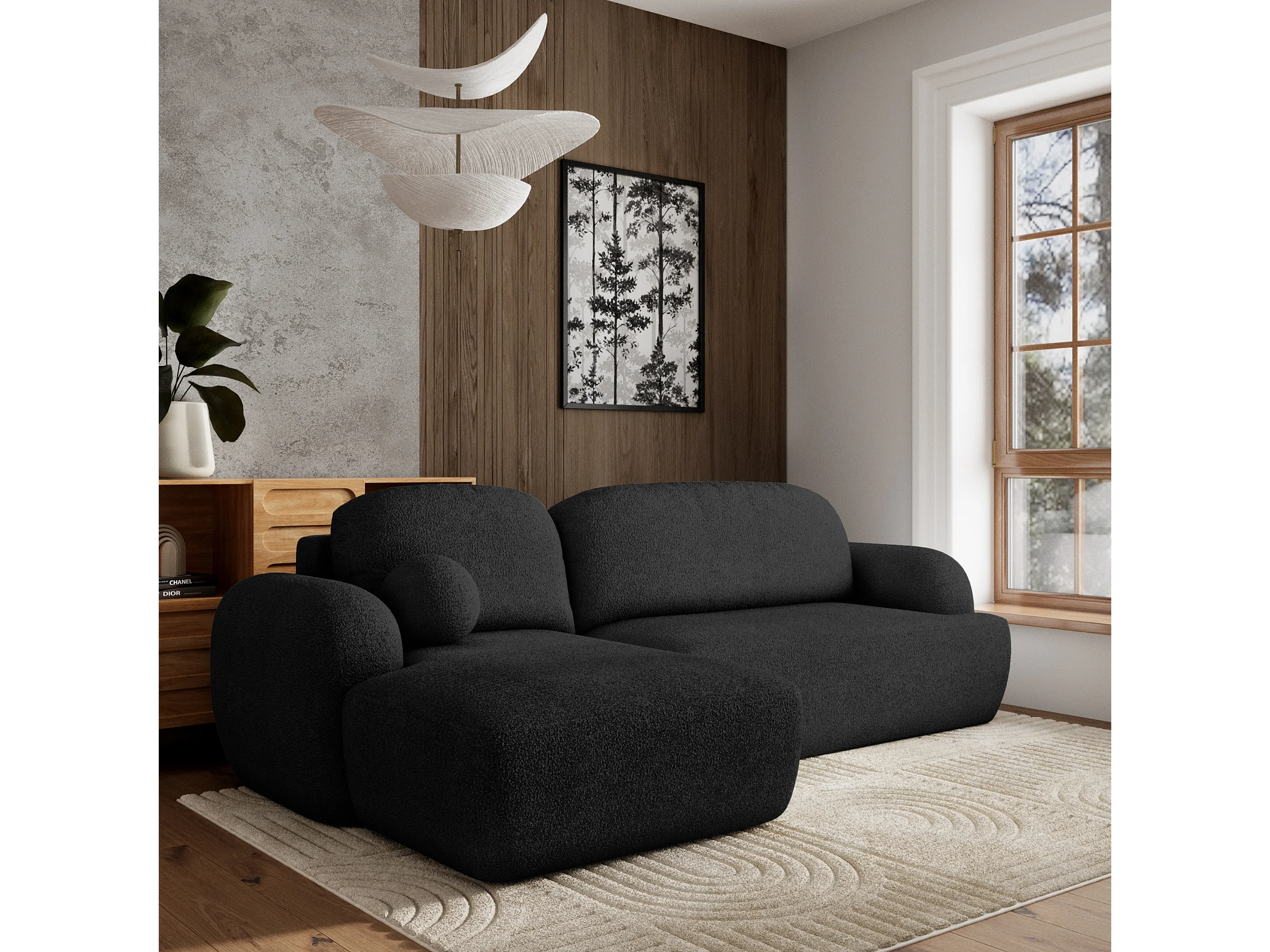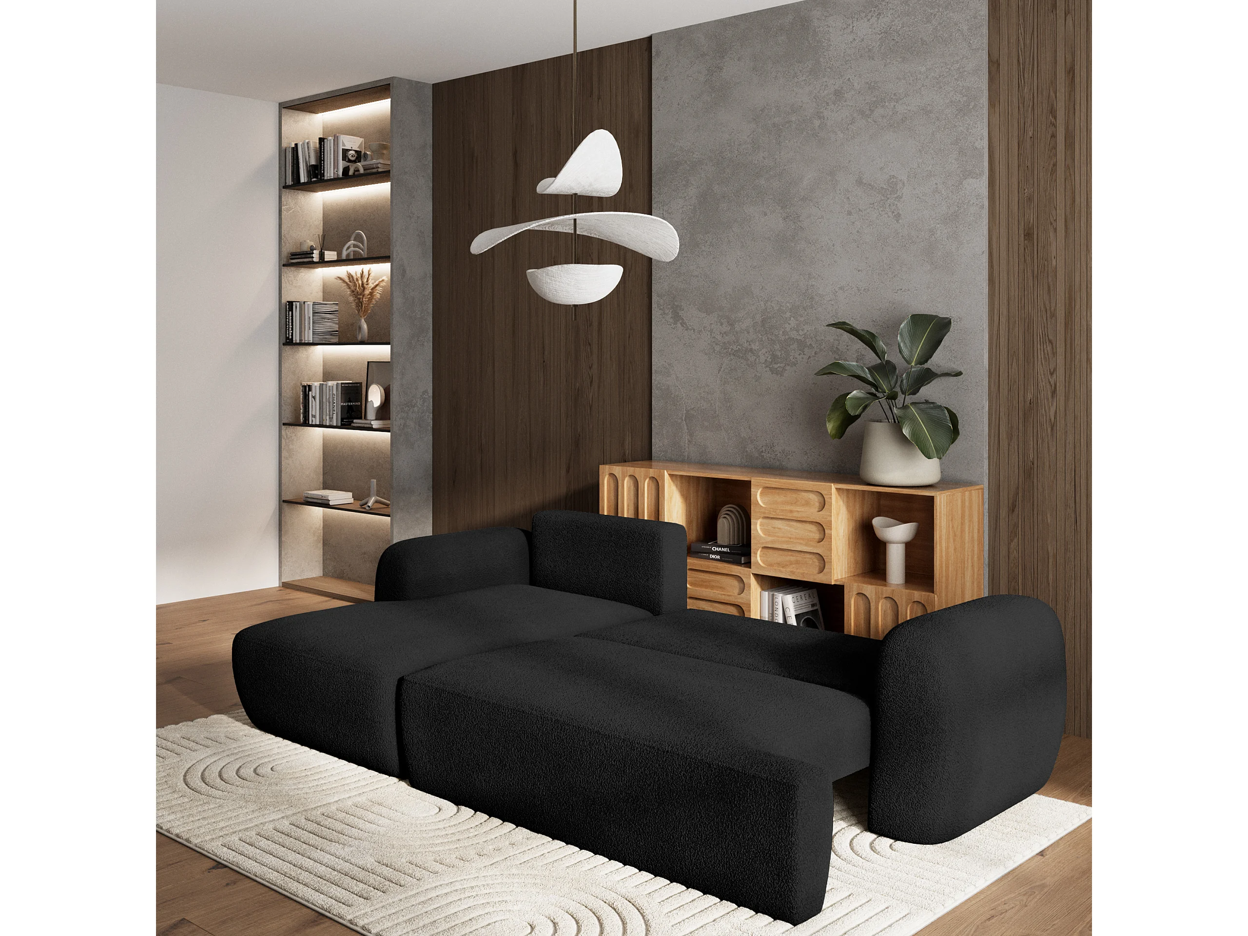 Canapé d'angle MODENZA Noir en bouclé avec fonction de couchage