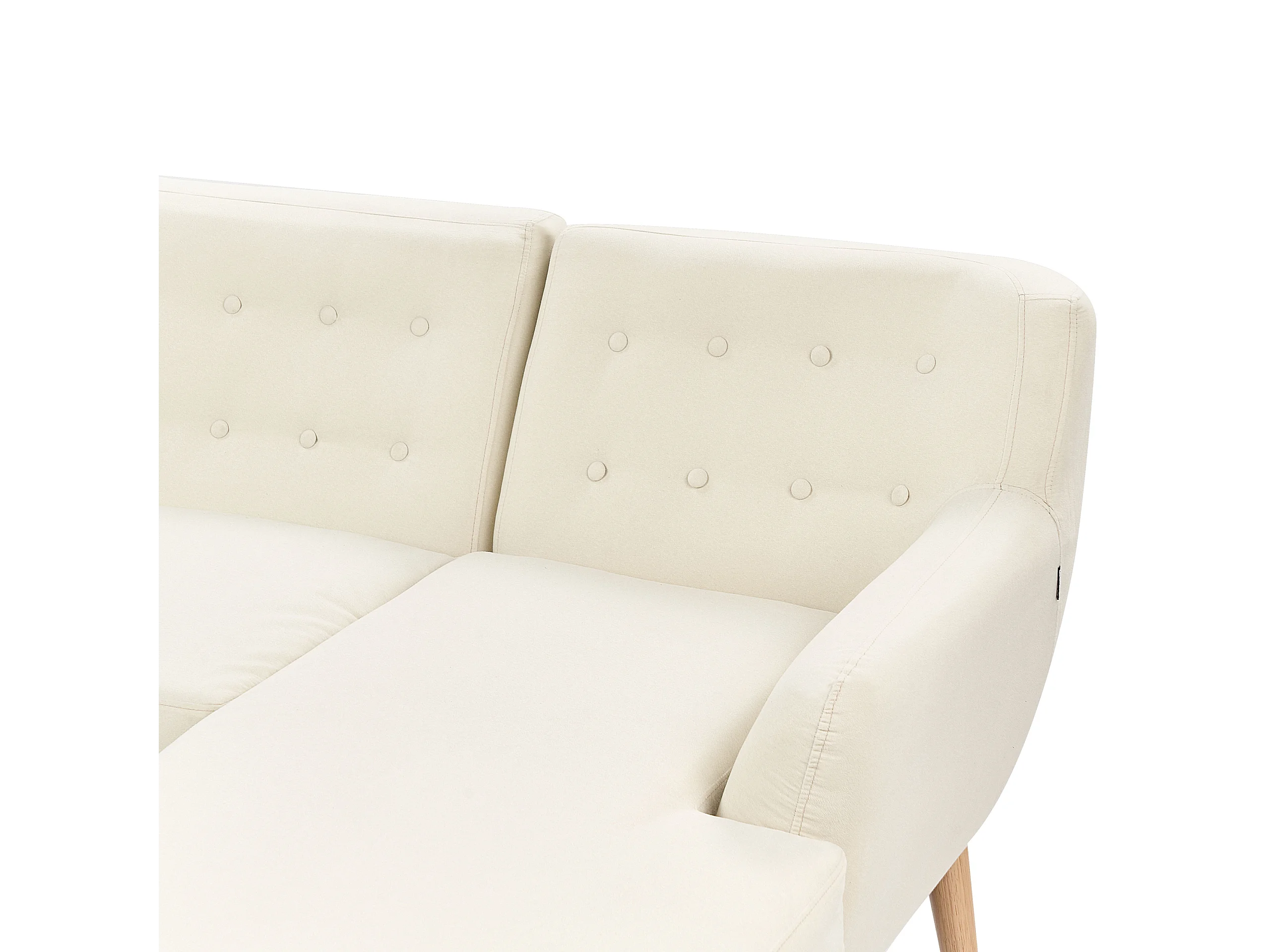 Canapé d'Angle Moderne 3 places en L avec Dossier Boutonné en Tissu Beige Clair Motala