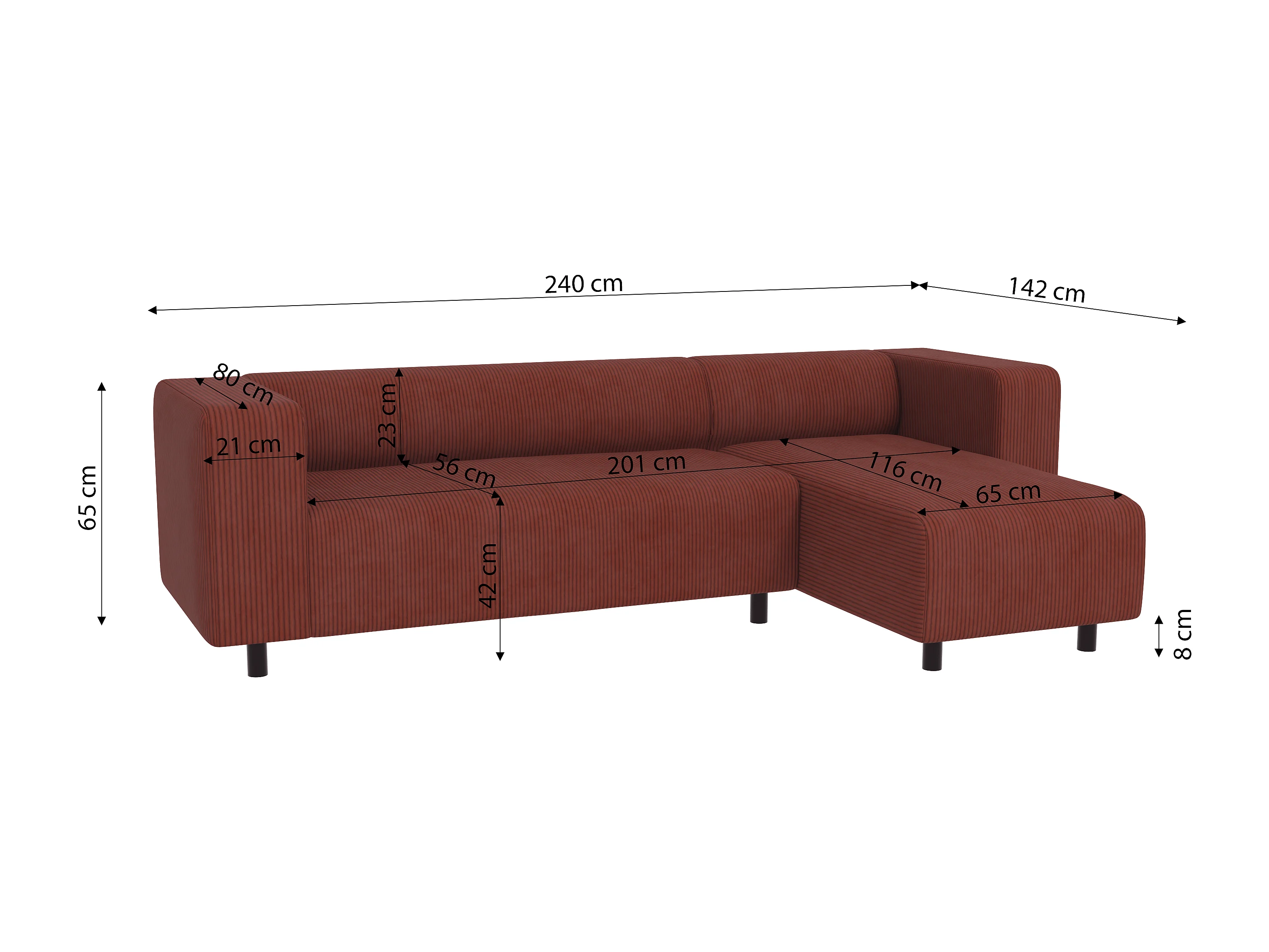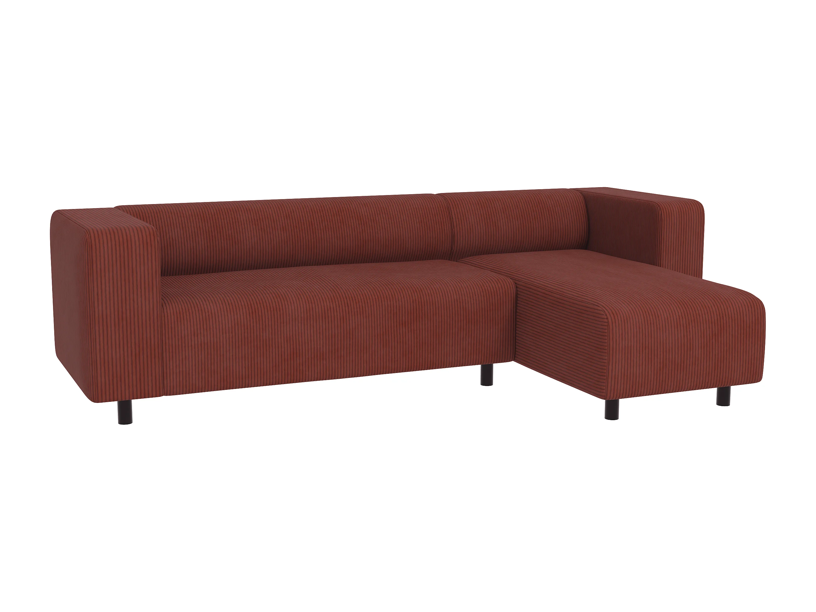 Canapé d’angle moderne avec ottomane en velours côtelé terracotta avec assise confortable THORA