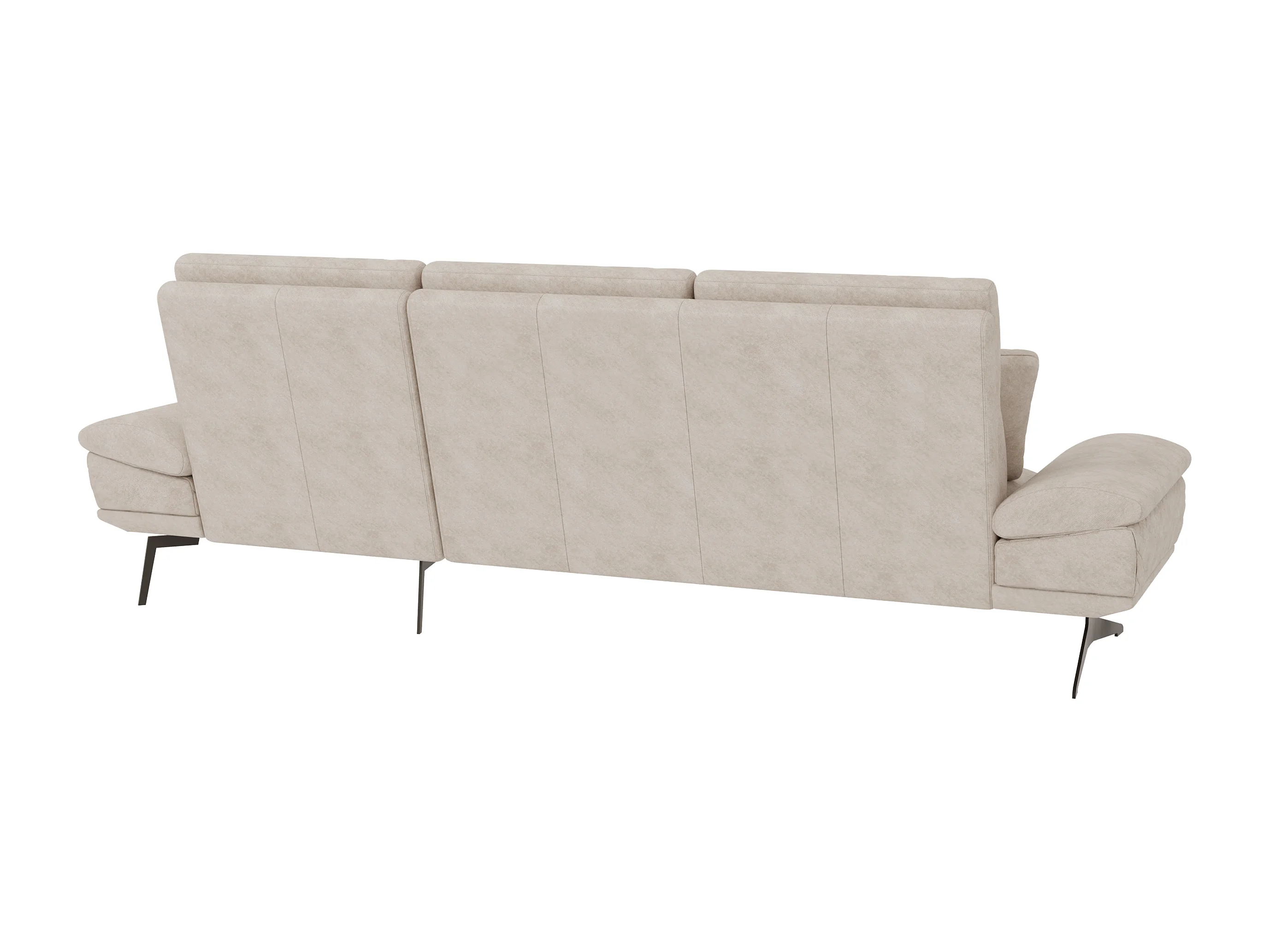 Canapé d’angle moderne avec ottomane et pieds hauts en métal noir, en tissu velours beige HAGA
