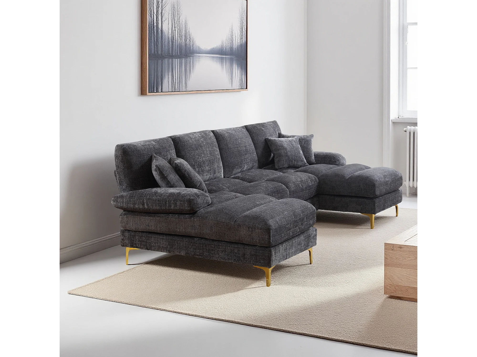 Canapé d'angle moderne en U en chenille avec deux assises,Canapé panoramique, - 4 places - gris