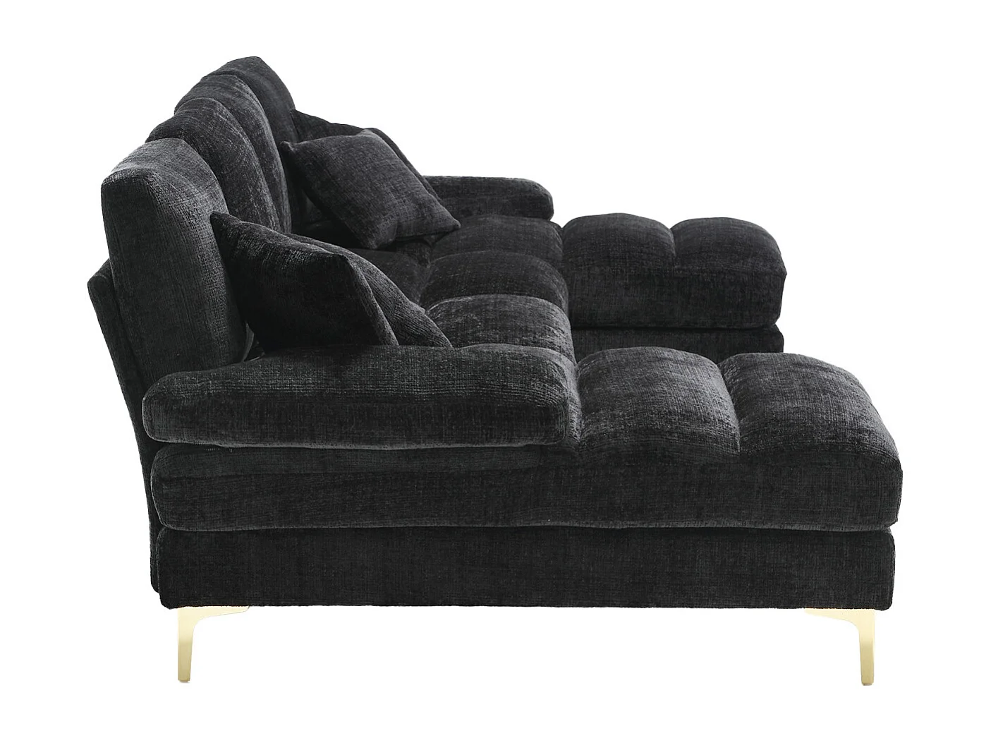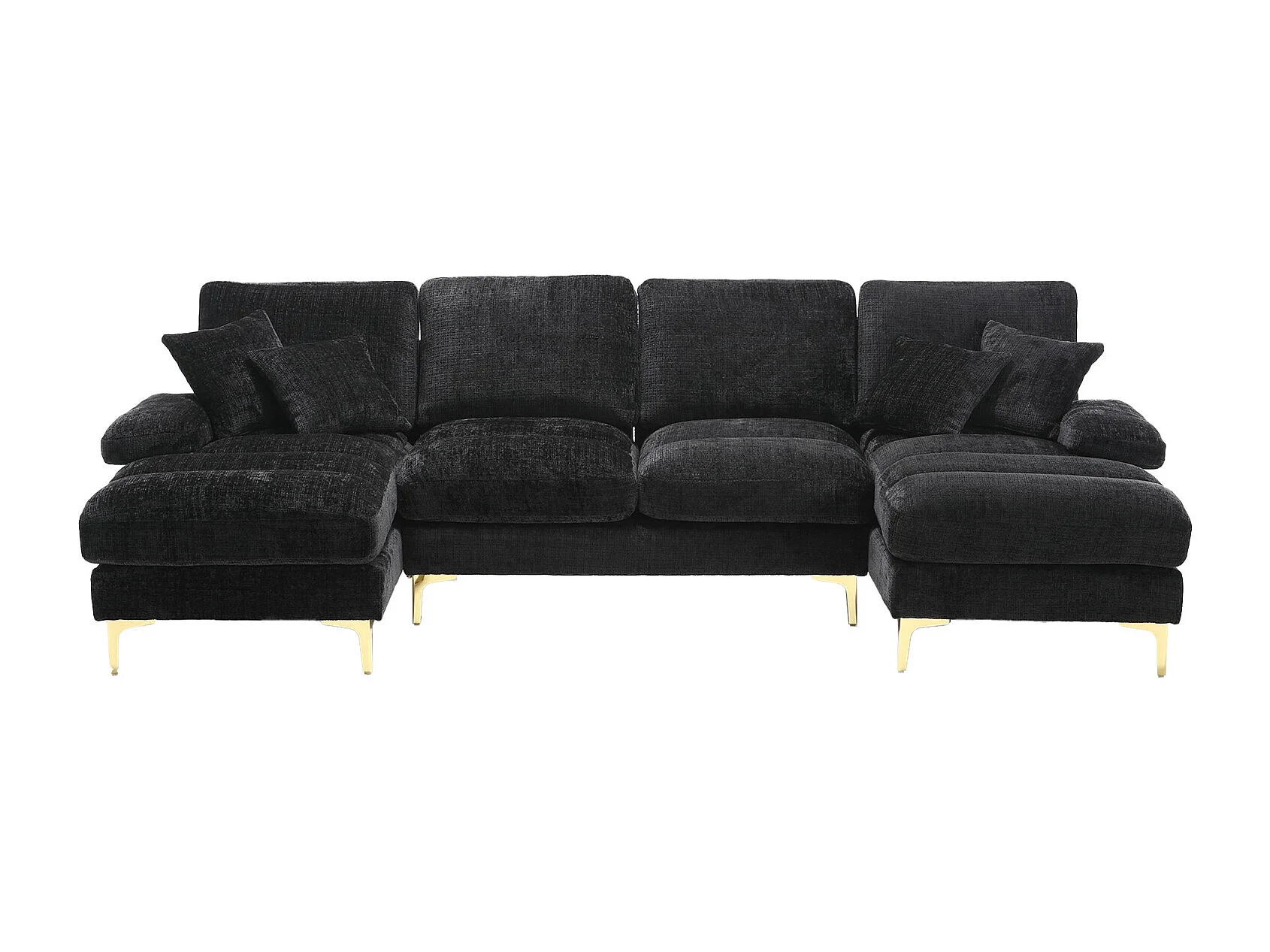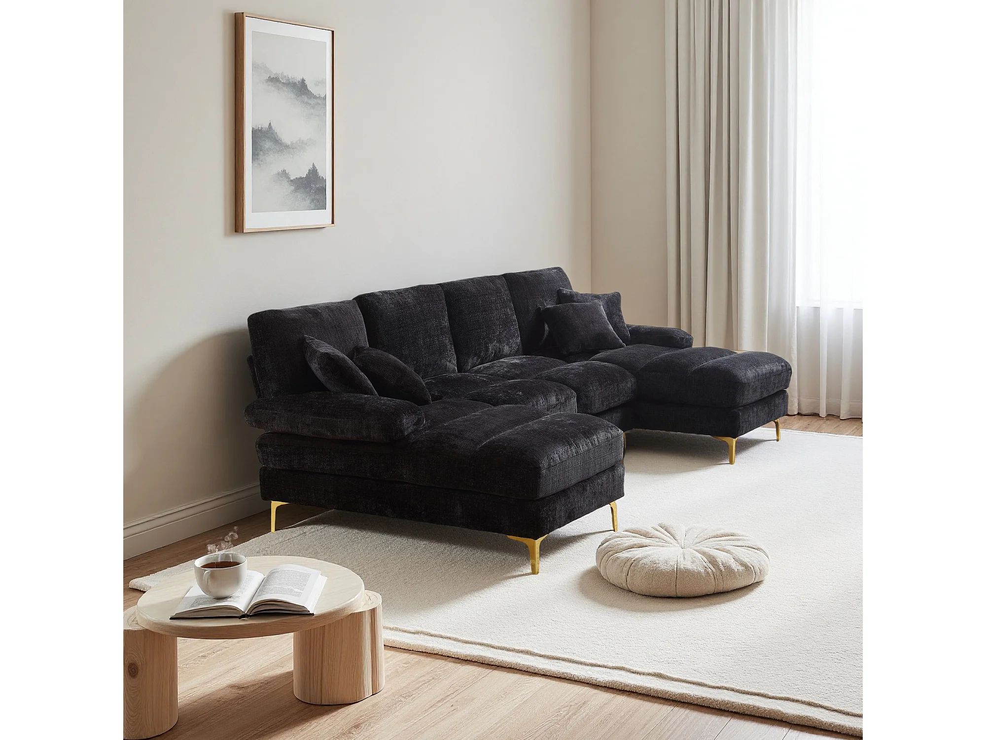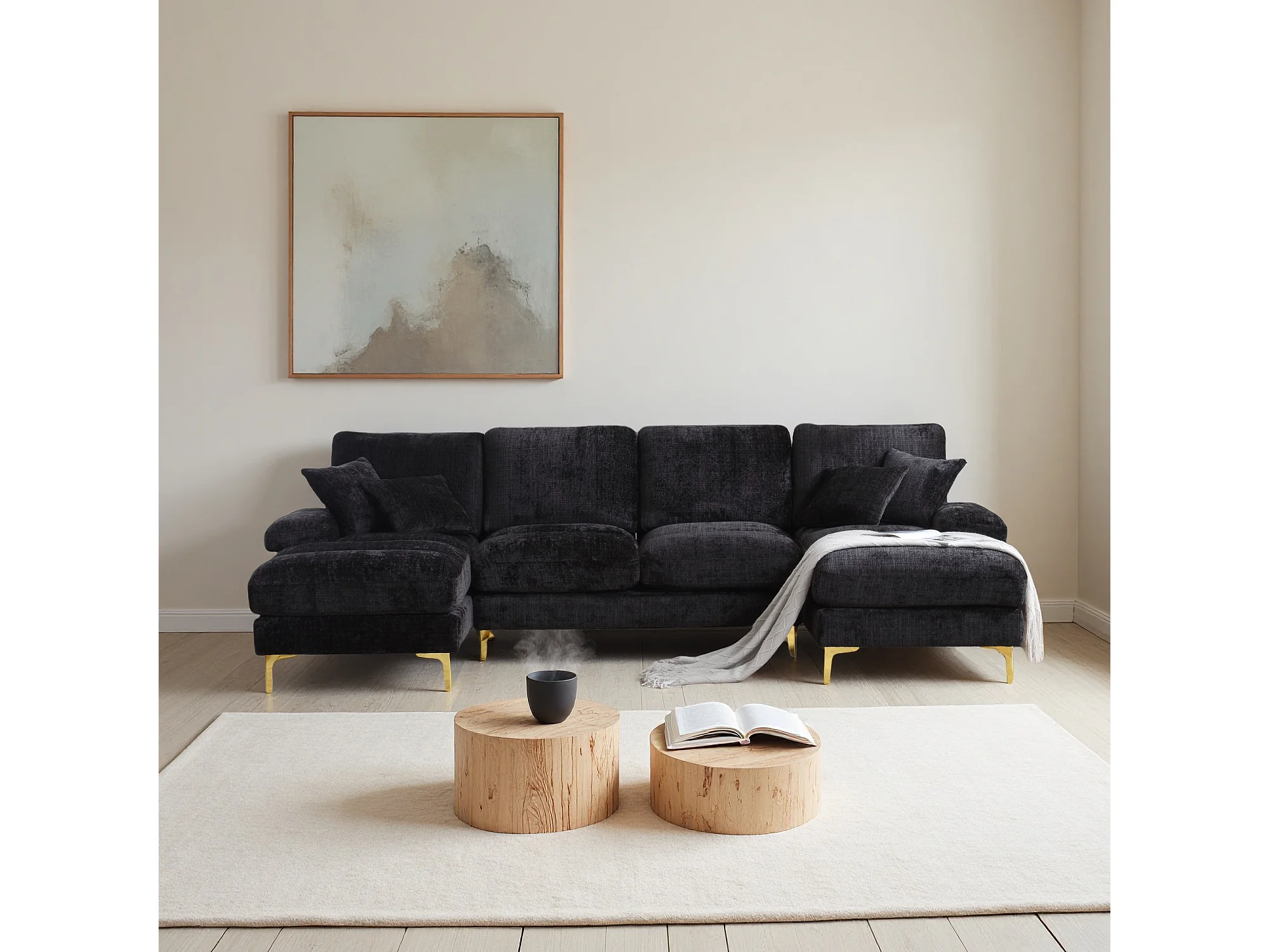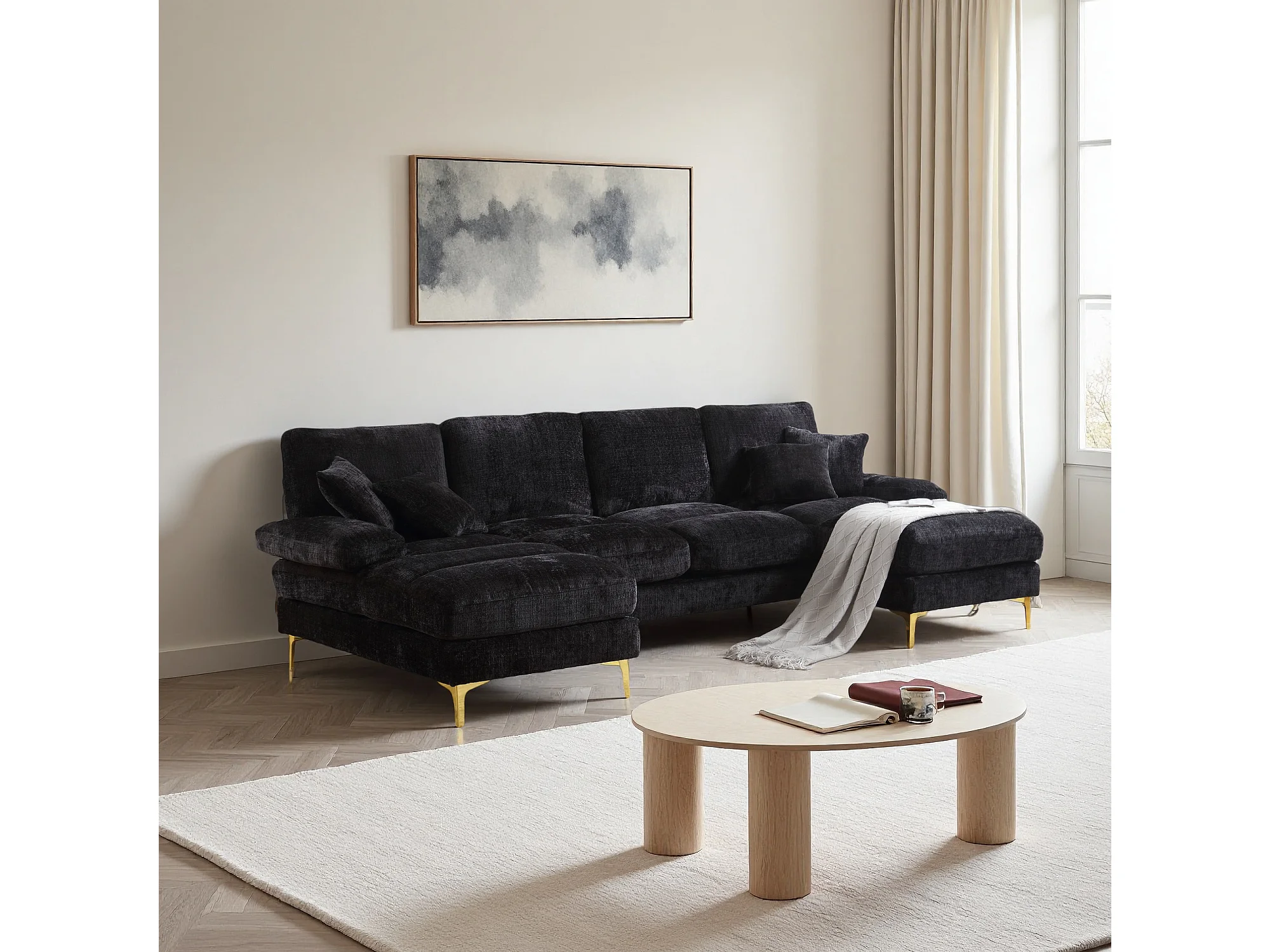 Canapé d'angle moderne en U en chenille avec deux assises,Canapé panoramique, - 4 places - Noir